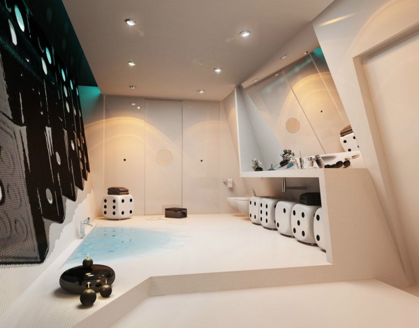 Добавянето на акцент придава стил на интериора на всяко помещение. В модерните бани, фокусната точка може да бъде камина, вана с нестандартен дизайн, LED огледало, интересна мивка или акцентна стена, облицована с интересни плочки.