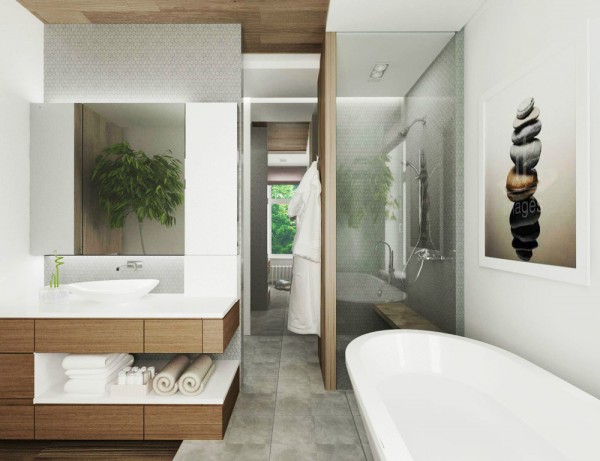 Съвременното обзавеждане залага на отворените пространства, липсата на стени и усещането за свобода и простор. Това важи в пълна сила и за банята. Откажете се от стандартните душ кабини, които визуално стесняват помещението. Обособете отделните зони в банята с помощта на различни подови настилки или стенни облицовки, а за разделяне на мократа зона от сухата използвайте ефектна завеса. Ако много държите на душ кабината, изберете такава от прозрачно стъкло.