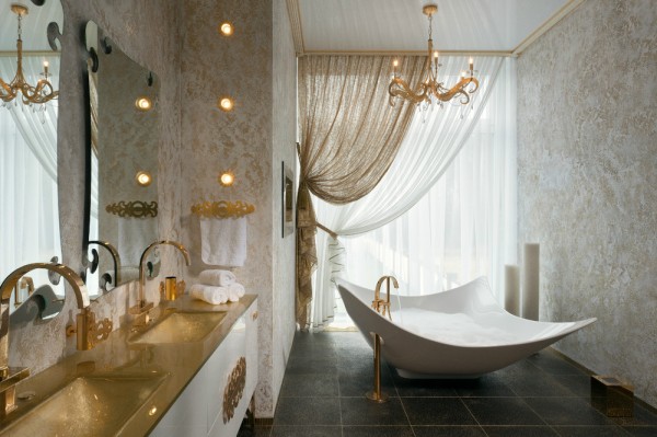 Аквариумът ще изпълни банята с живот, хармония и красота. Според специалистите, наблюдаването на рибките в аквариума регулира кръвното налягане, намалява главоболието и помага да се освободите от стреса. А сега си представете да бъде съчетано с топла и приятна вана! Предлагат се и дизайнерски аквариуми-мивки. Представляват мивка със стъклен корпус, който всъщност e аквариум. Гледката на тюркоазената вода, в която плуват рибки, ще придаде неповторимо тропическо очарование на банята ви.