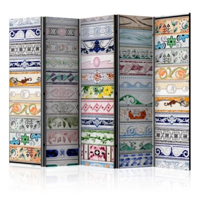 Сгъваем декоративен параван като стена от шарени фризови плочки