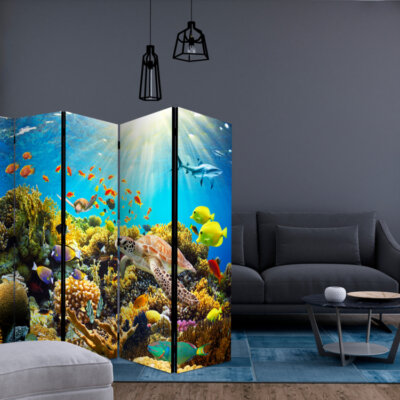 Трикрилен сгъваем параван за стая с цветни мотиви