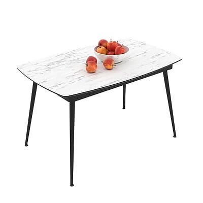 Трапезна маса с плот от синтерован камък като бял мрамор