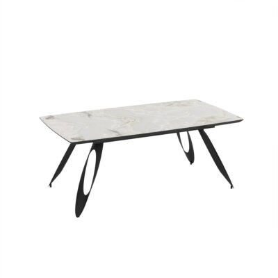 Разтегателна трапезна маса с плот в цвят черен мрамор