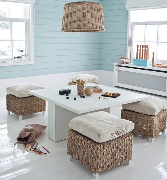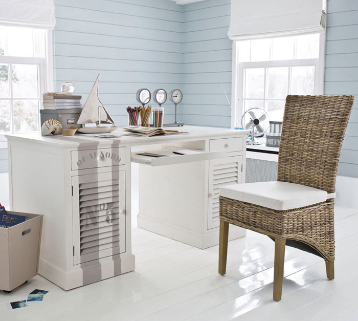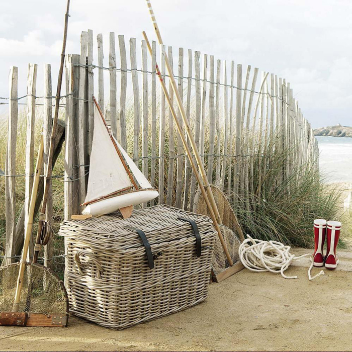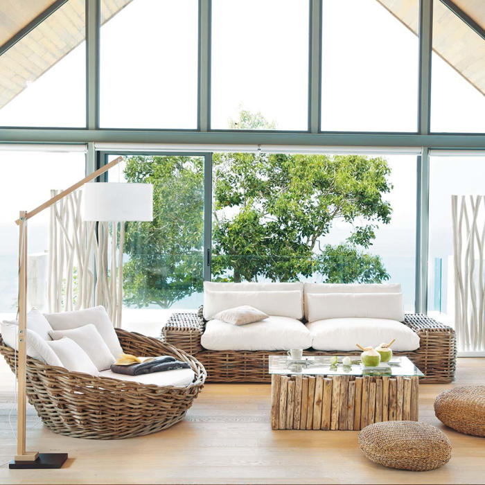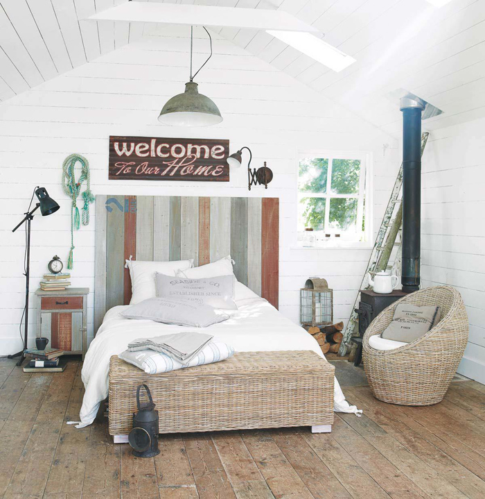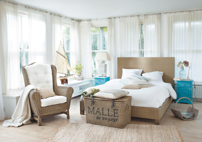 Внесете топлото лято, полъха на вятъра и мириса на морето в дома чрез мебели от ратан за спалнята или трапезарията, дървени ламперии, щори или табуретки.