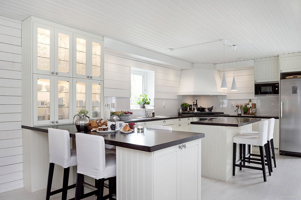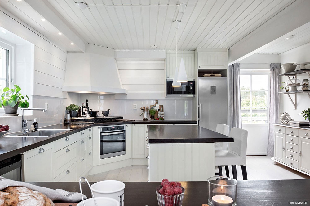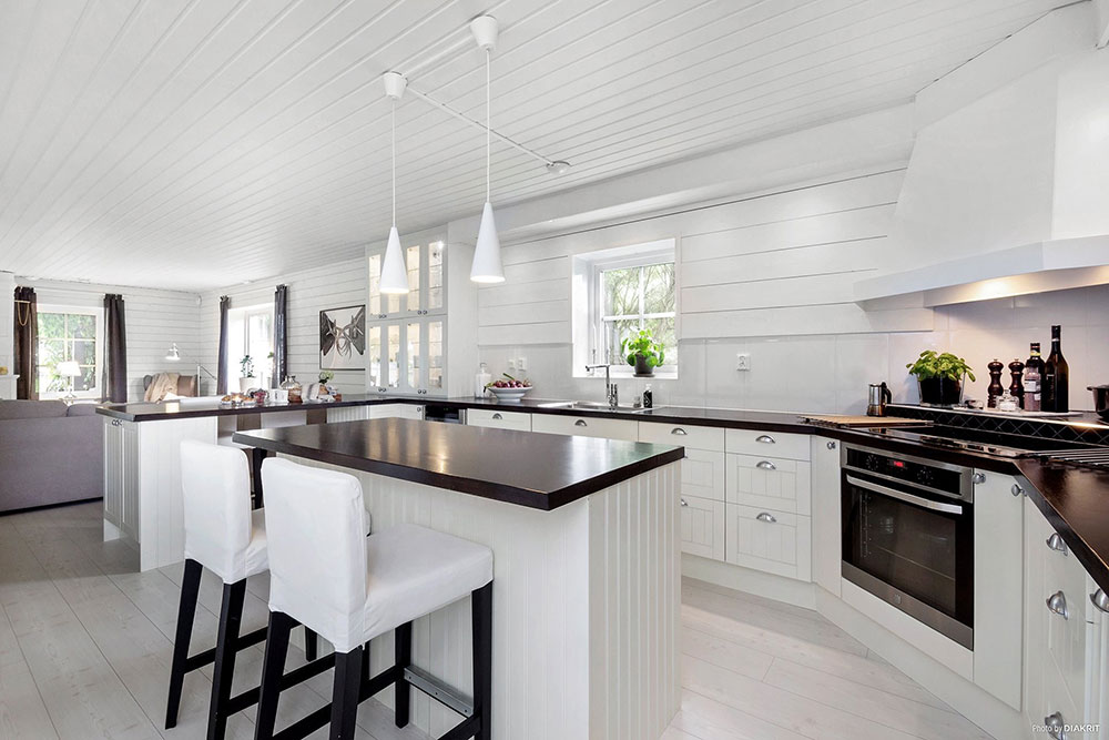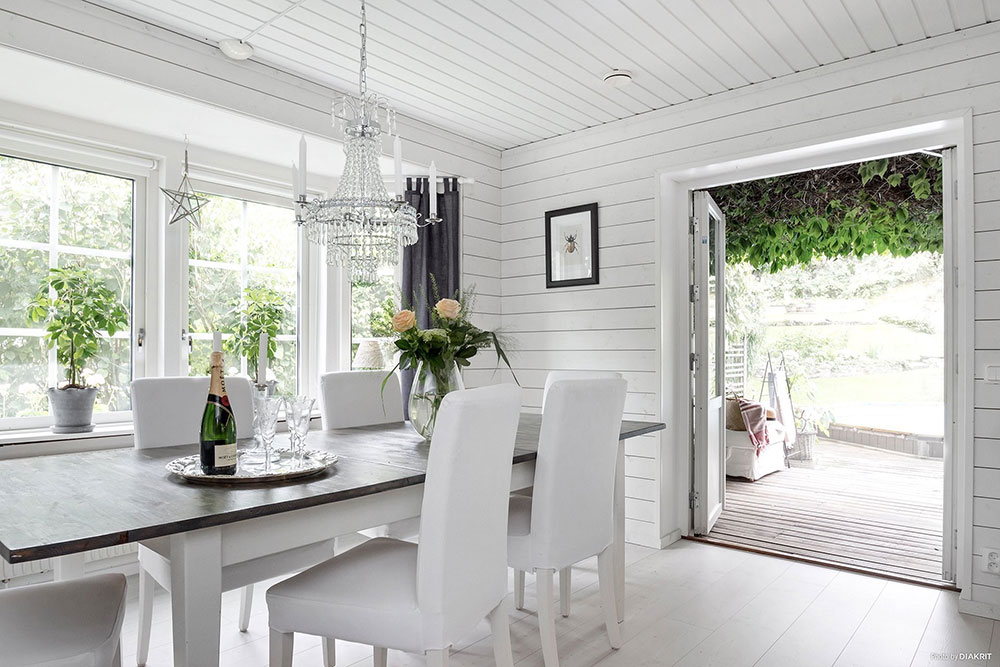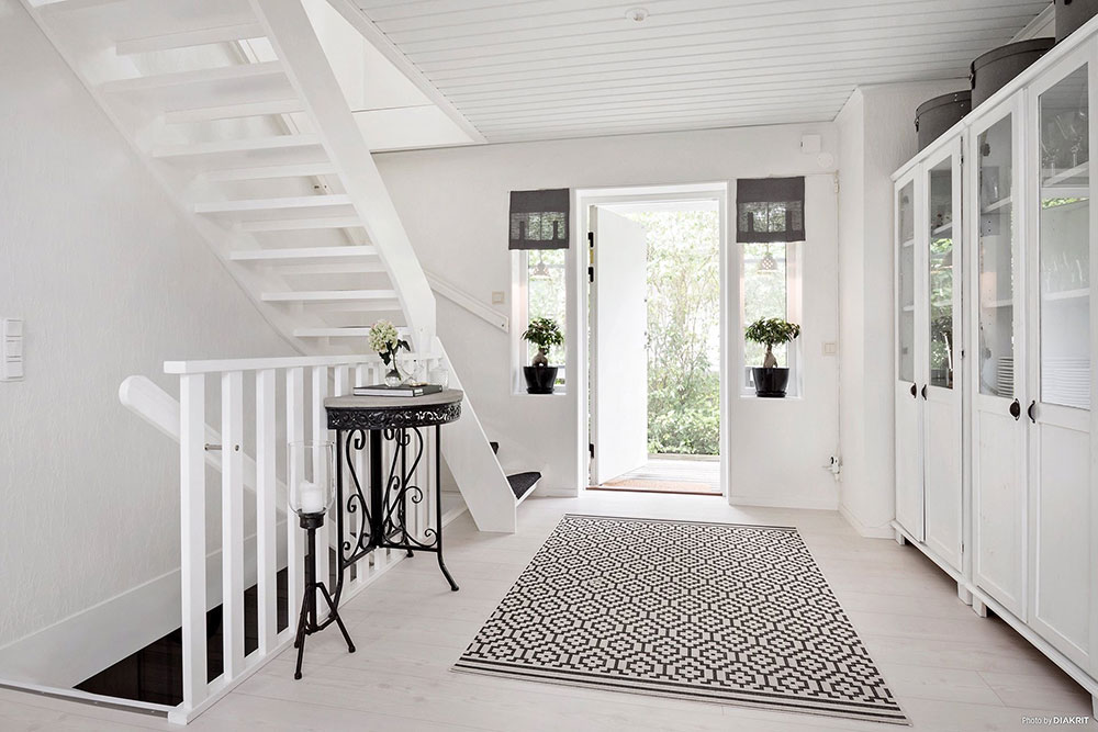 Хармония е ключовата дума, която най-добре би могла да опише интериора на тази очарователна вила. Семплият класически стил на обзавеждането е в преобладаващо бяло, с акценти в по-тъмни монохромни цветове.