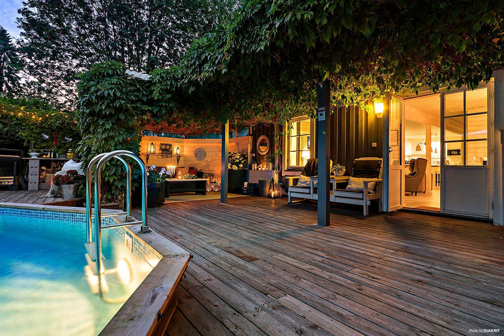Безспорно най-впечатляващ, обаче, е перфектно озелененият двор, който предлага място за забавление и релакс, както на децата, така и на родителите. Дали ще изберете разхлаждане в басейна, почивка на шезлонгите, вкусна вечеря на барбекю или питие с близки на верандата, гарантирано ще се чувствате добре в подобна атмосфера!
