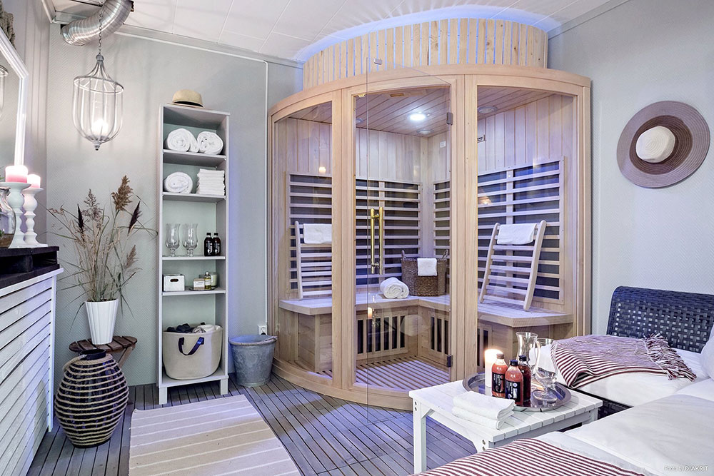 Стените и таваните в почти всички помещения са покрити с декоративни плоскости, имитиращи дървена ламперия, което от една страна се съчетава отлично с ламинатните подове и с керамичните и фаянсовите повърхности, а от друга страна, създава един почти рустикален топъл уют.