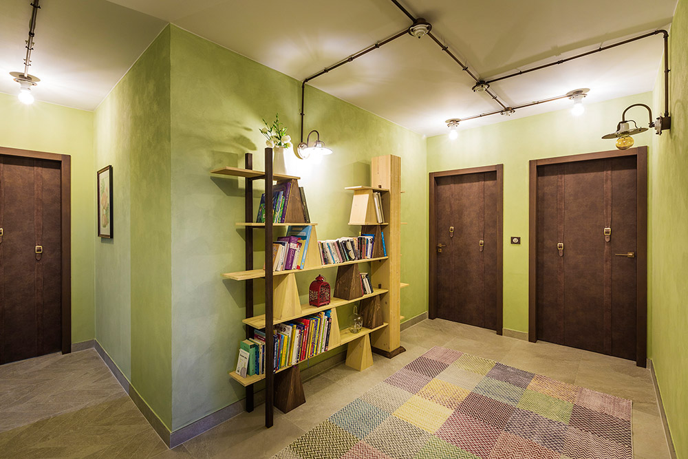 Осветелнието в цялото жилище отново идва от модерни италиански брандове.
