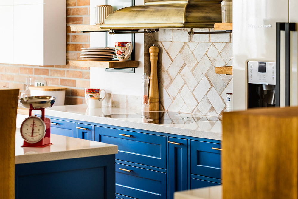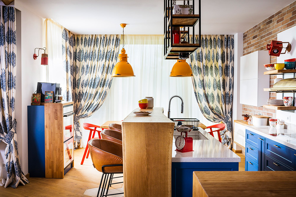 Силно впечатление прави цветовата комбинация, която прелива от по-обрани земни, релаксиращи тонове в коридорите и спалнята, към ярки акценти в дневната и кухнята. Как се спряхте на смелото трио червено-жълто-синьо?