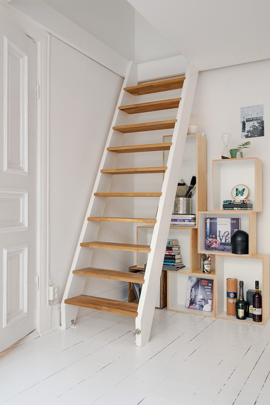 На тази малка квадратура са събрани дневна, трапезария, кухня, спалня, баня с душ и килер – дрешник, като екстравагантната спалня на таванското ниво е ключов фактор в разпределението. Сигурно ви се струва много като за 38 кв.м, но всъщност има няколко трика, които са помогнали на дизайнерите да не претрупат обстановката. На първо място това са цветовете. Бялото отново е максимално подходящия тон. Придава свежест, допълнителна доза светлина и отваря пространствата. Прочети повече...