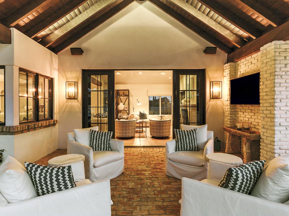 Къщата е едноетажна, с 4 спални и отворен план, където непринудено се срещат дъбови подове с високи тавани, поддържани от дървени греди, а между тях светлината от огромни панорамни прозорци и пламъците на варовикова камина рисуват вдъхновяваща картина.