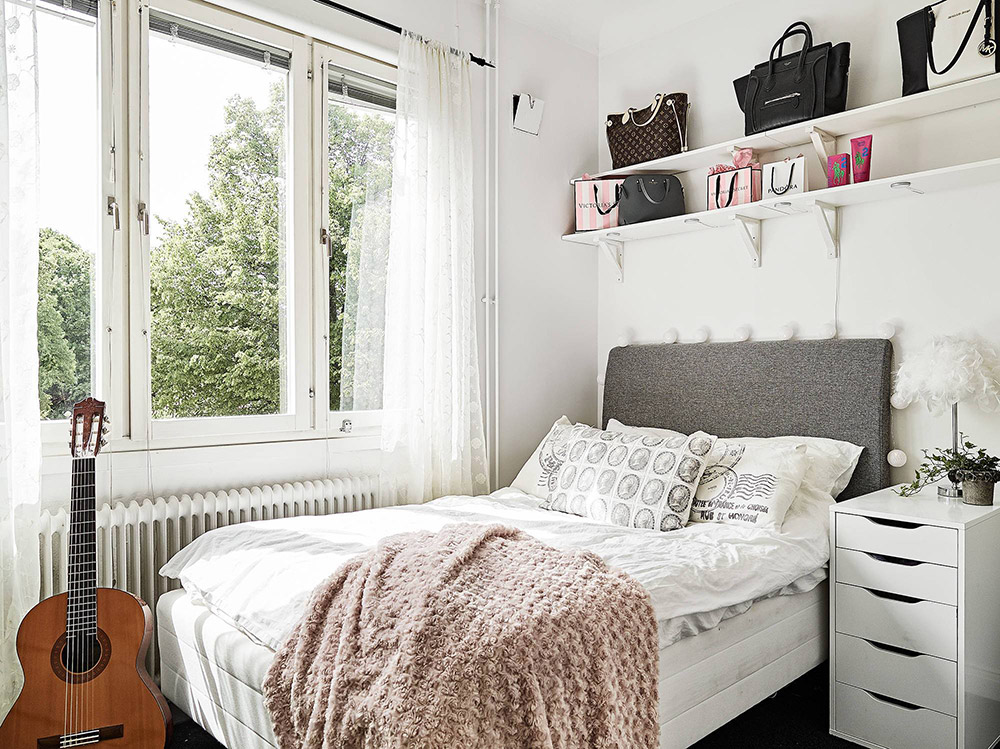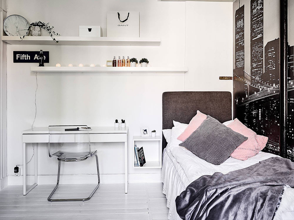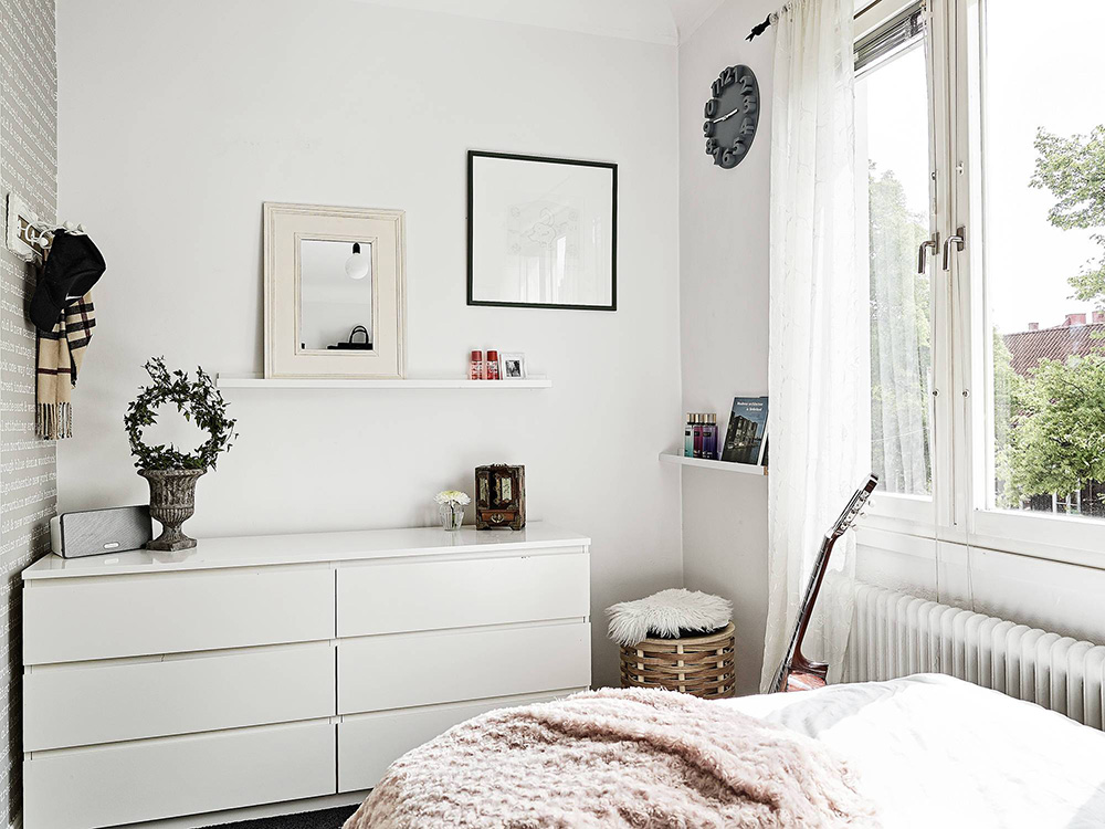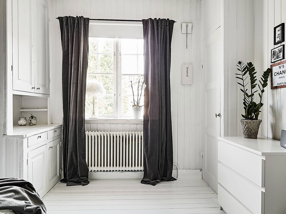 Спалнята и детските стаи са решени в бяло, естествена светлина навлиза през големи прозорци, а плътните завеси позволяват доброто затъмнение при нужда. Картините, осветителните тела с нетрадиционна визия и декоративните пъстри възглавници са ключов елемент в интериора на спалните помещения.