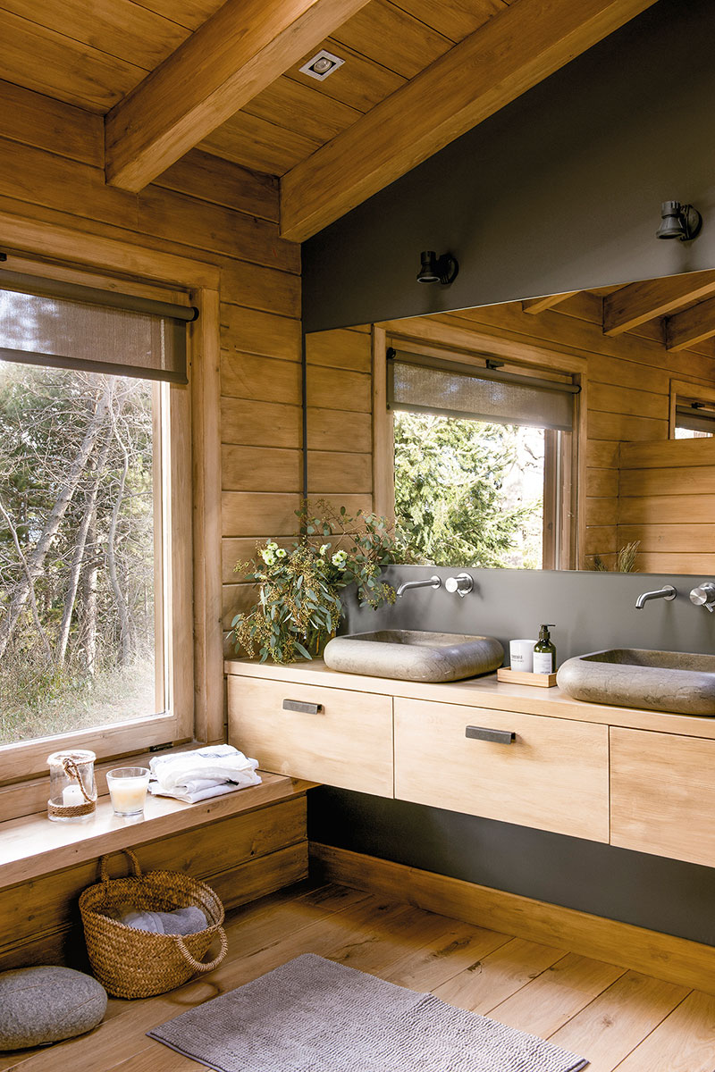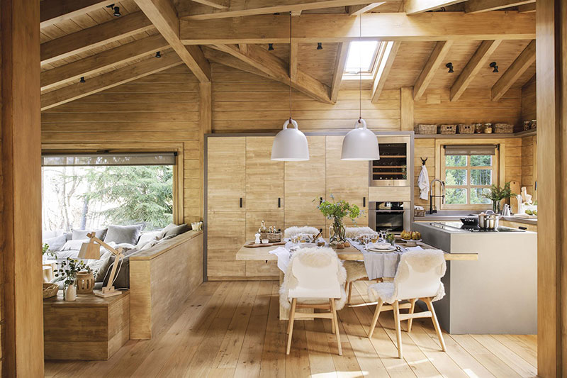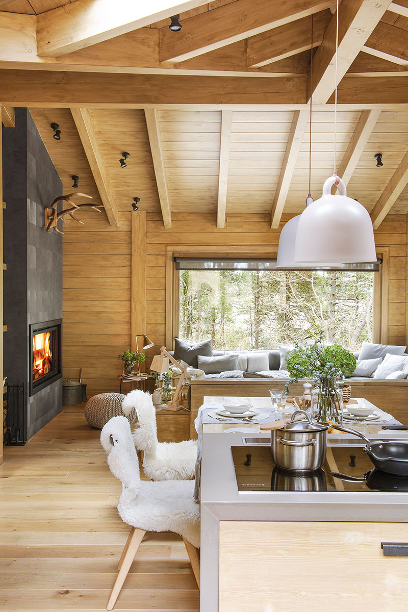 Тази едноетажна къща от дърво, обзаведена в съвременен рустик стил би била чудесна възможност.