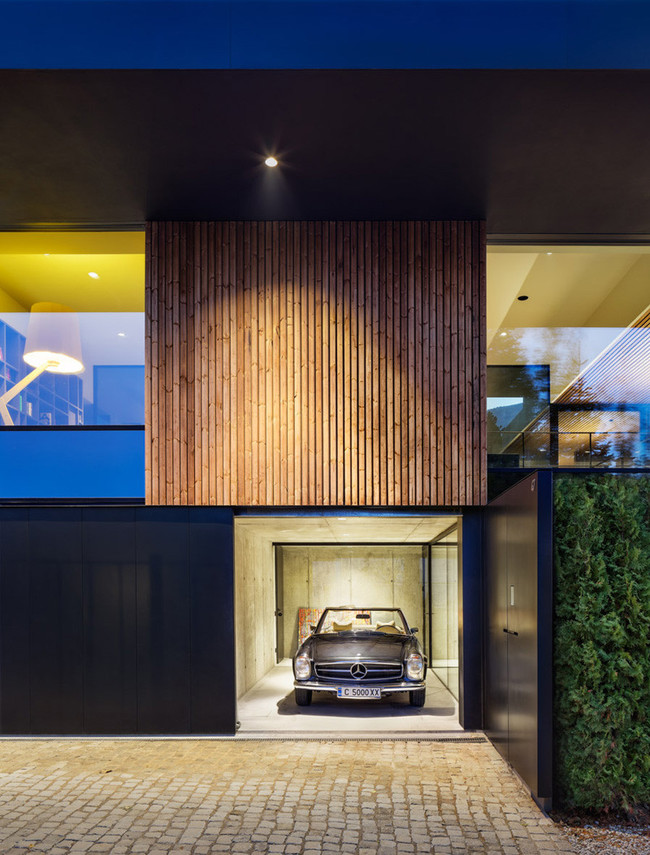 Подходът, от гаража към жилищната площ – хол и кухня е едно практично и интересно хрумване на архитектите. Сам по себе си, гаражът е своеобразна витрина, т.к две от стените му са стъклени.
