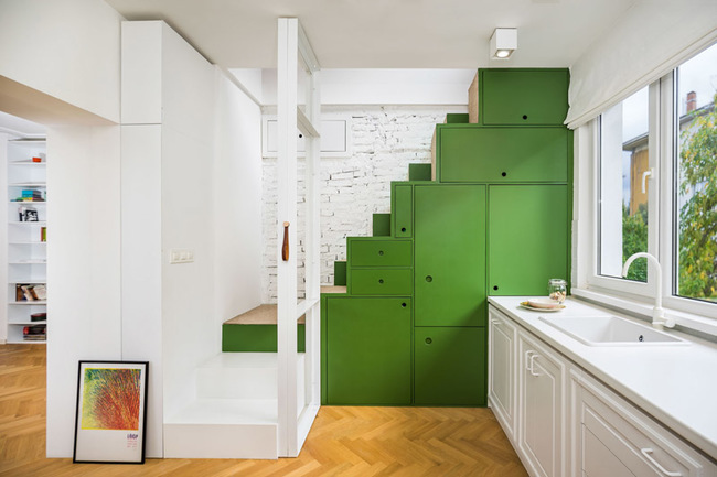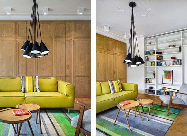 Ще се спрем на един подходящ пример за подобно разпределение на площта – стилен апартамент с отворен план. Намира се в София и е проект на българското дизайнерско студио dontDIY. Домът е собственост на бизнесмен с изявена страст към фотографията и пътуванията. Намира се на последния етаж в стара четириетажна сграда от 20-те години на миналия век. Предимството на позицията на сградата е, че кварталът е богат на зелени площи и видимостта от всяко помещение на жилището е привлекателна.