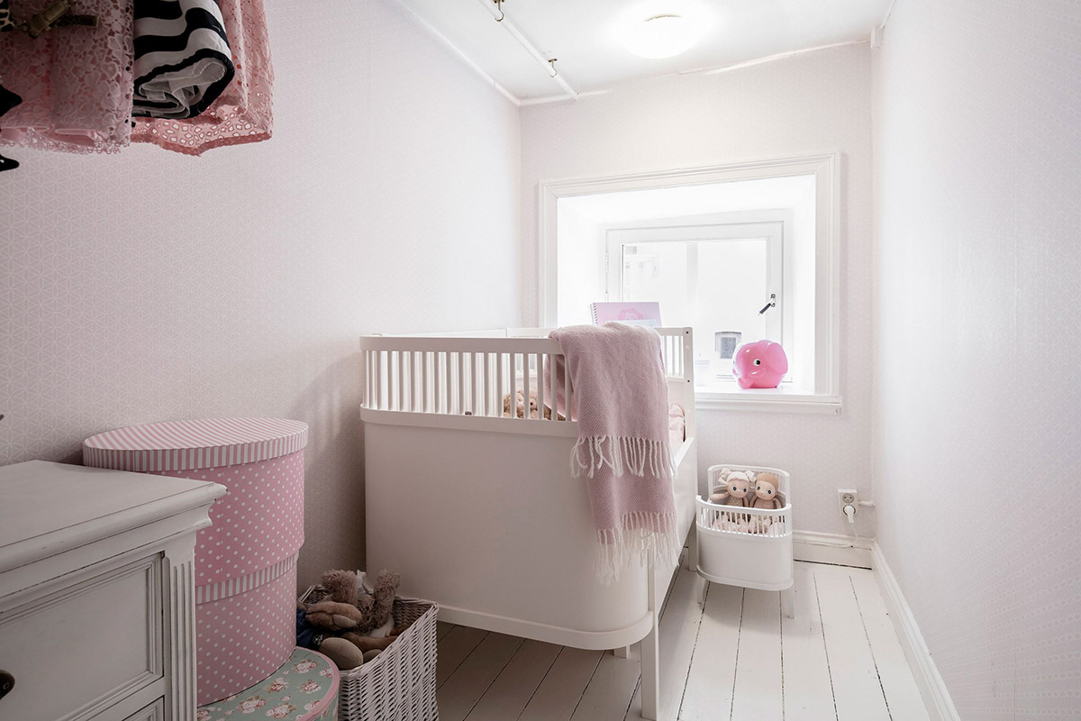 Няколко стълбички по-нагоре и отделено с дървена врата, се намира малко таванско помещение, превърнато в стая за бебе. Въпреки ограничената площ, тук се събират детска кошара и скрин за съхранение на дрешки.