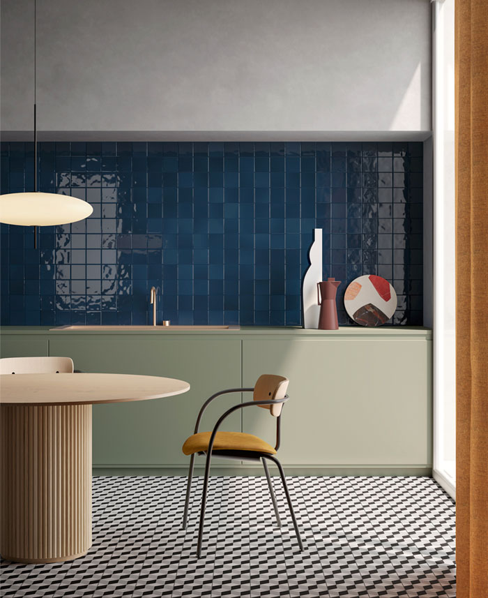 Тъмносиньото е цвят, който перфектно се съчетава със зелени, сиви и тъмни тонове, и винаги придава изисканост, а качествата му да влияе успокояващо и да подсилва апетита не бива да бъдат подценявани.
