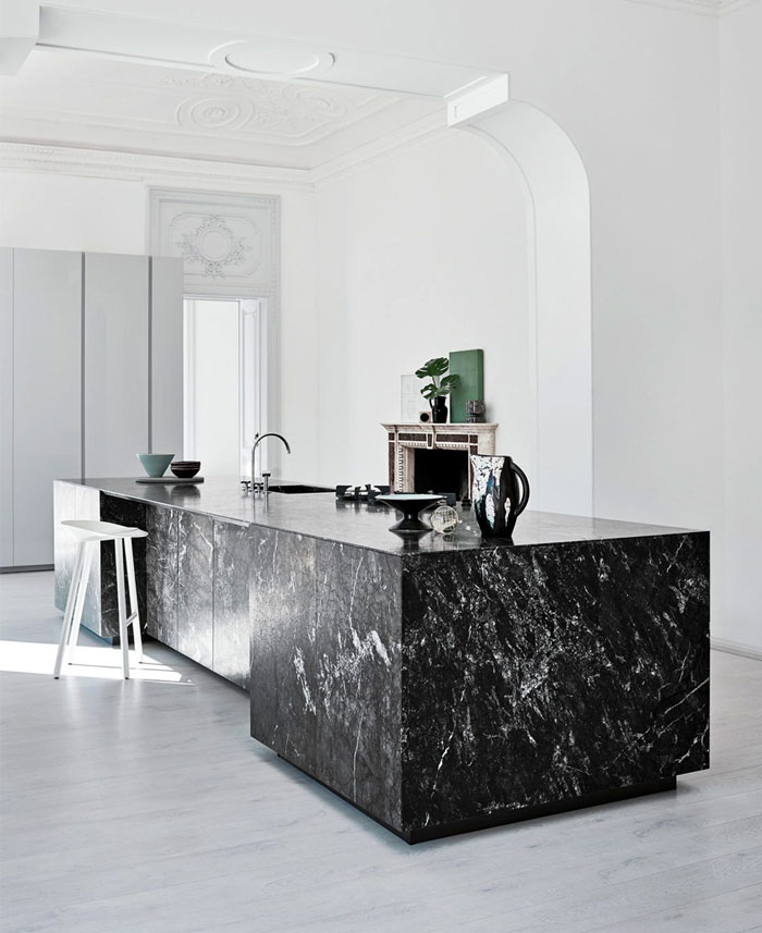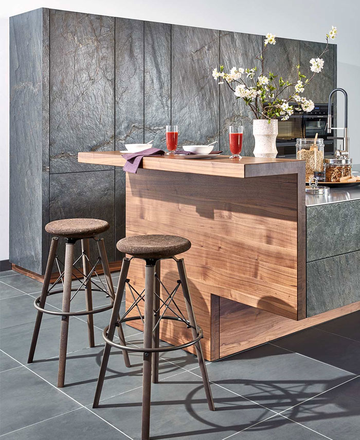Естествено, не говорим за лъскавите черни шкафове, които бяха актуални преди години. През тази година ще се търси модерно-класическа визия с матирани и приглушени повърхности, където луксозен тъмен камък и гранит или мрамор, с рисунъци сякаш изваяни от художник, ще придадат драматичен вид и изисканост на кухненската част. Не се страхувайте да експериментирате и съчетайте с контрастиращи тонове като цвят кафе, дърво, нюанси сиво, таупе или бежово и крайният резултат ще е модерно, топло и приветливо излъчване на вашата кухня.