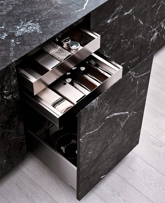 Решени в гранит, мрамор, или с дървесен акцент, повърхностите в кухнята се допълват чудесно с акценти от метал, които биват претворени в обличане на кухненския ширм, ползват се при конструирането на кухненски остров, стават основна линия в шкафовете, или са част от осветлението. В някои случаи металът се използва като завършваща облицовка на всички кухненски шкафове, което е невероятно ефектно.