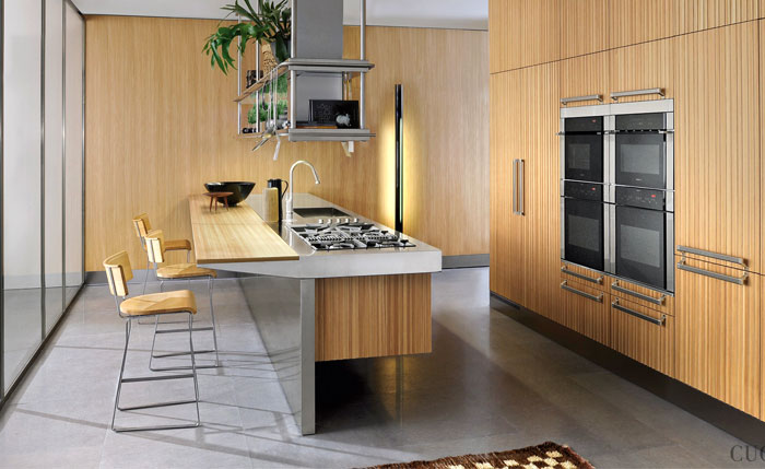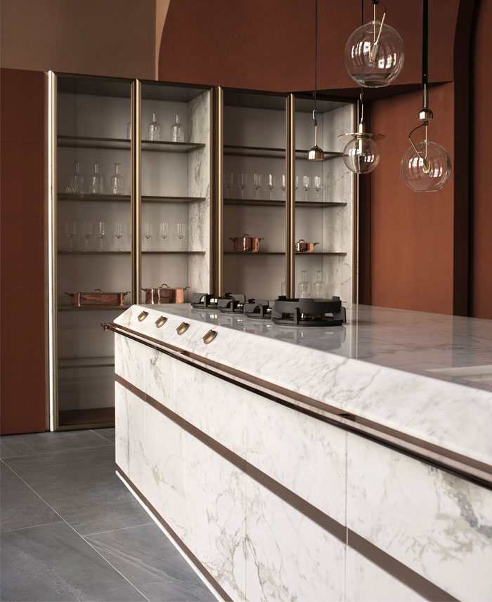 Естествени материали като мрамор, гранит, дърво и бляскави метални акценти от мед и месинг, стъкло и камък са основен избор за обзавеждане на кухня от съвременните дизайнери. Едно от предизвикателствата, които често се срещат е в намирането на възможно най-функционалните решения за кухненския плот и затова той бива пригоден да бъде ползван за поставяне на котлони или мивка от едната страна, докато от другата играе ролята на бар плот, който се използва и като трапезна маса. Изключително предпочитани са шкафовете без дръжки с пуш бутон и плавно затварящи се вратички. Играта на светлини и живописния ефект „киароскуро“, чрез който светлината създава обем, пък е една от най-новите технологии, които се прилагат върху класическите материали.
