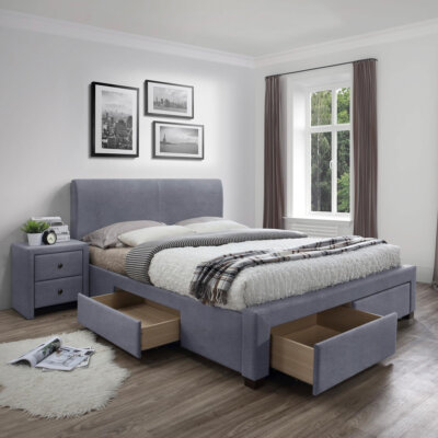 Легло с текстилна дамаска и 3 чекмеджета Таула (2 цвята)
