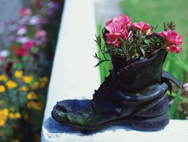 Старата кубинка може да се превърне в отлична саксия за дребни малки цветчета. Лакирайте я внимателно и я запълнете с пръст и камъчета, подходящи за каскадното цвете, което ще засадите вътре.