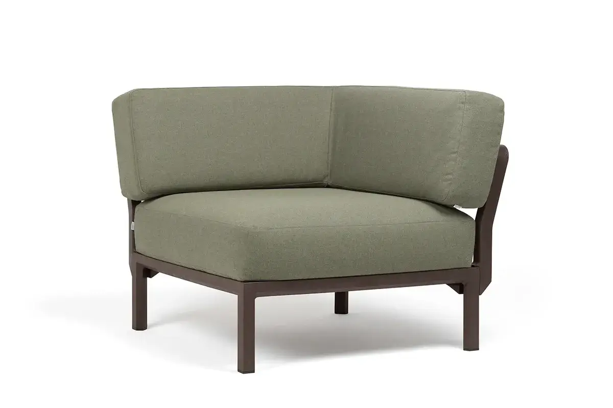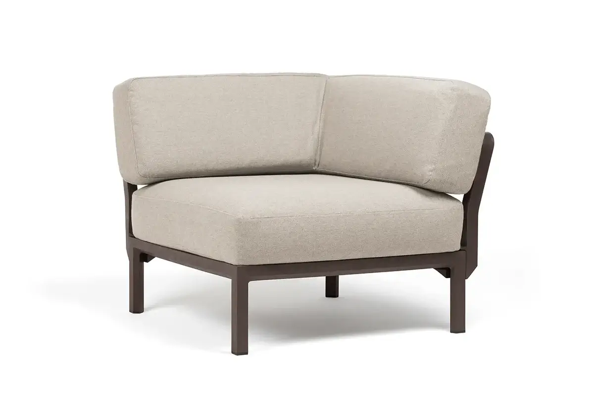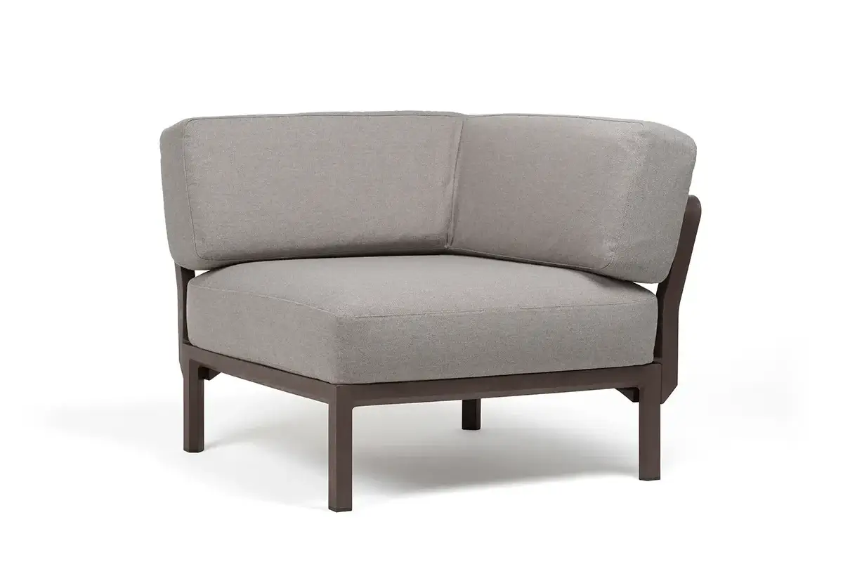 Ъглово градинско кресло K008 е модулен елемент, предназначен за комбиниране в различни конфигурации на външен диван D002 и оформяне на функционални зони за сядане.