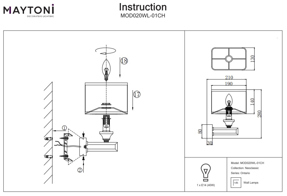 Производител на осветителни тела: Maytoni Компанията за осветителни тела Maytoni е съзададена през 2009 в Хамбург, Германия. Бързо се налага като европейски лидер и иноватор в областта на осветлението. През годините получава множество награди, които свидетелстват за високото качество и атрактивния дизайн на продуктите. Фирмата предлага както класически и модерни осветителни тела, така и специализирано техническо и архитектурно осветление.
