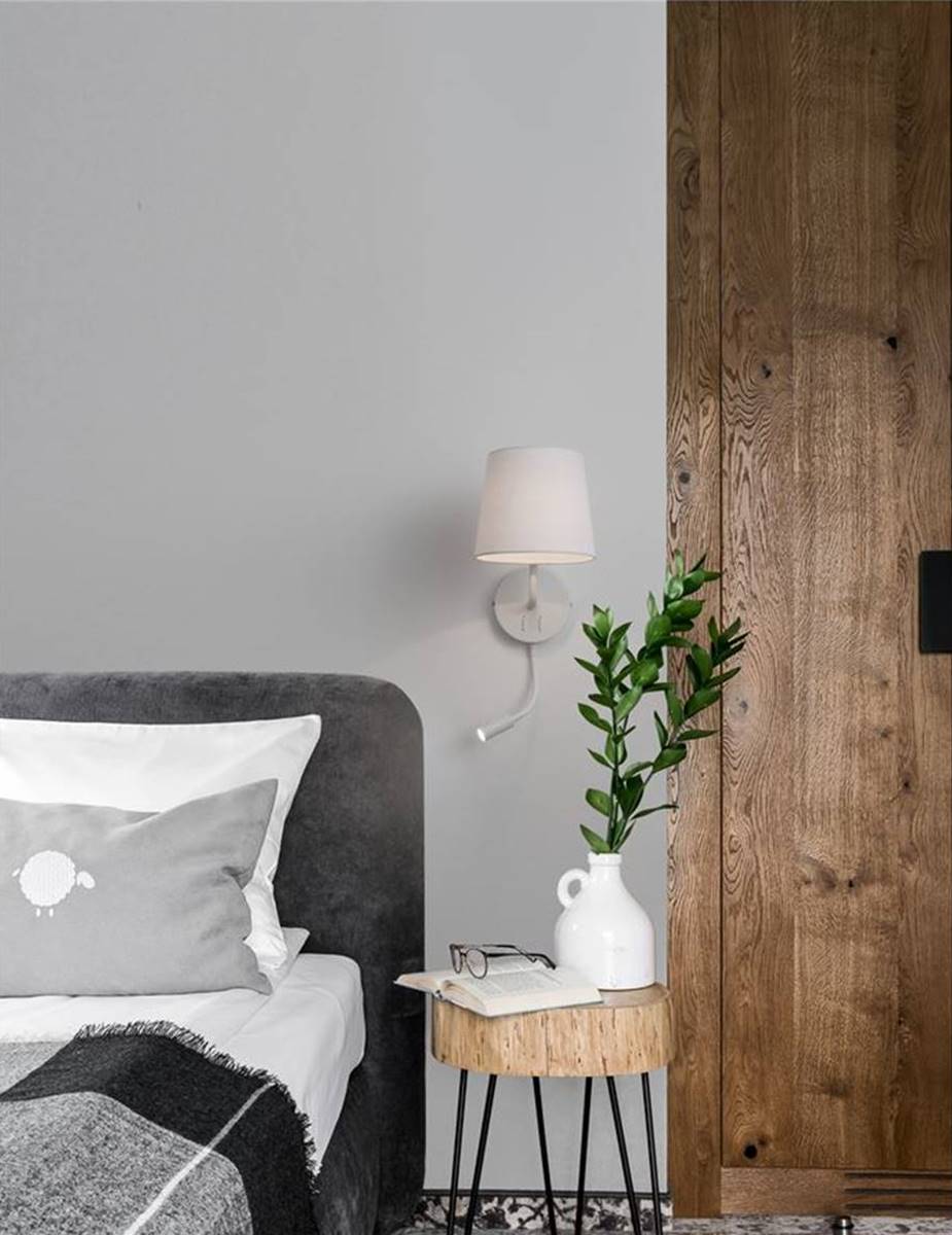 Този LED аплик в съвременен стил е стилно и функционално осветително решение, подходящо за спалня или други жилищни пространства. Съчетава класически абажур с насочващо се осветление, което осигурява комфорт и удобство.