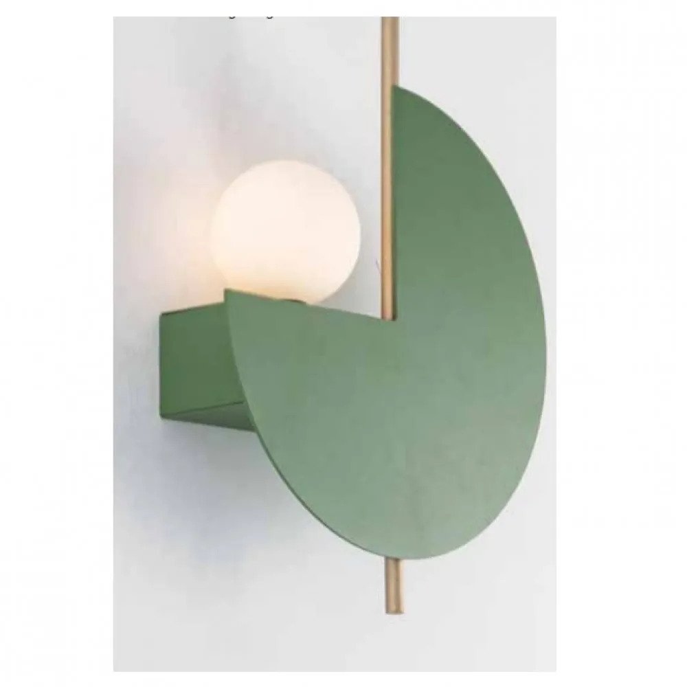 Атрактивен стенен аплик с метален диск, рамо в златисто или черно и бяла стъклена чашка, Zambelis.