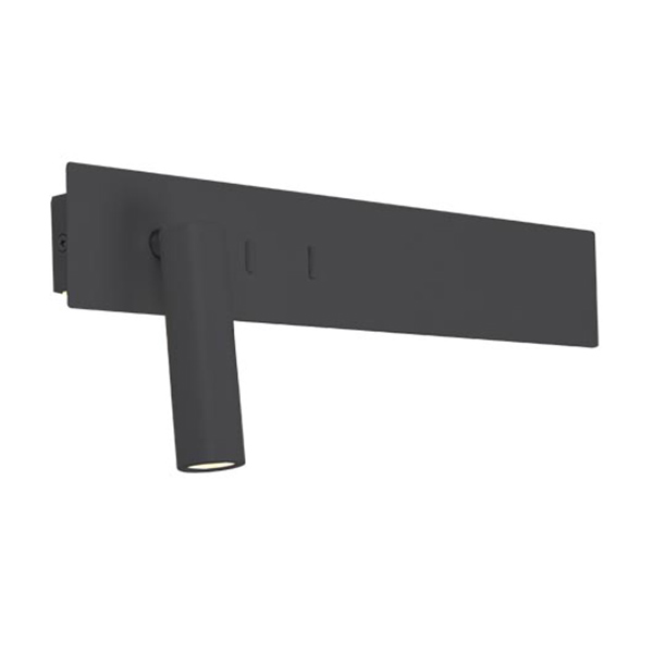 Модерен LED аплик с дълга метална основа с вградена индиректна светлина, сочеща нагоре и надолу, подвижен спот и два превключвателя Zambelis.