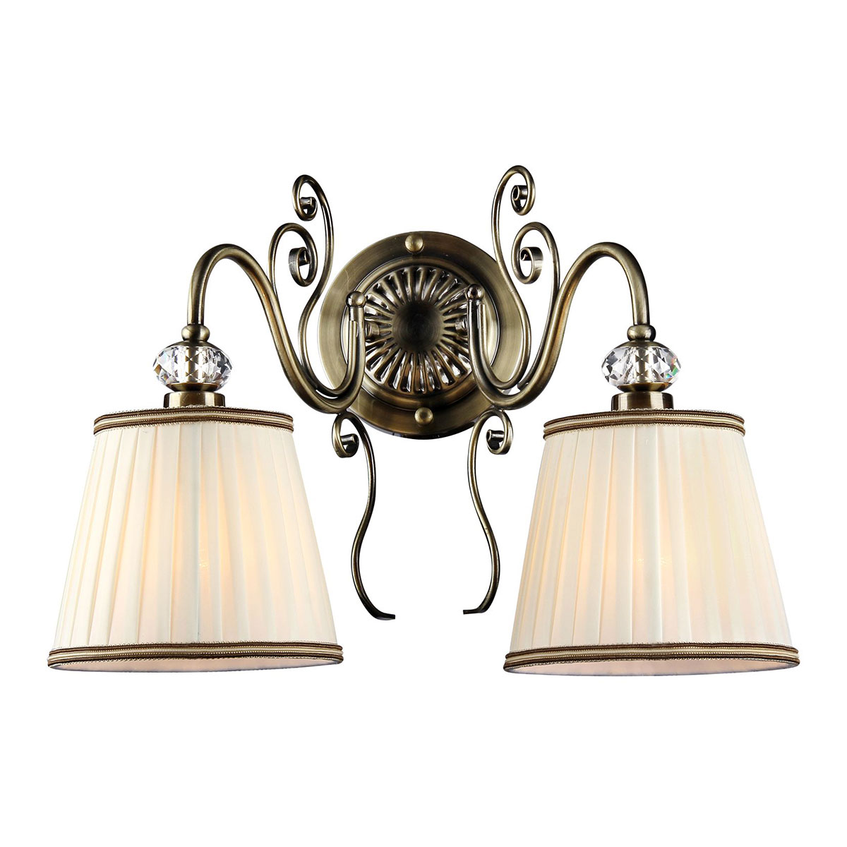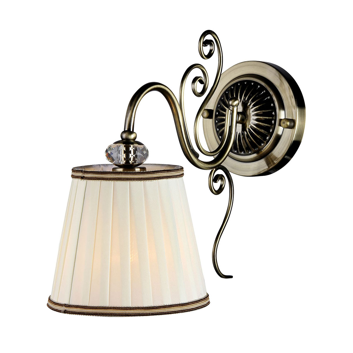 Аплик, изработен от метал в цвят античен бронз с декоративни елементи и бяла плисирана шапка от органза в конусовидна форма Maytoni, серия Vintage.