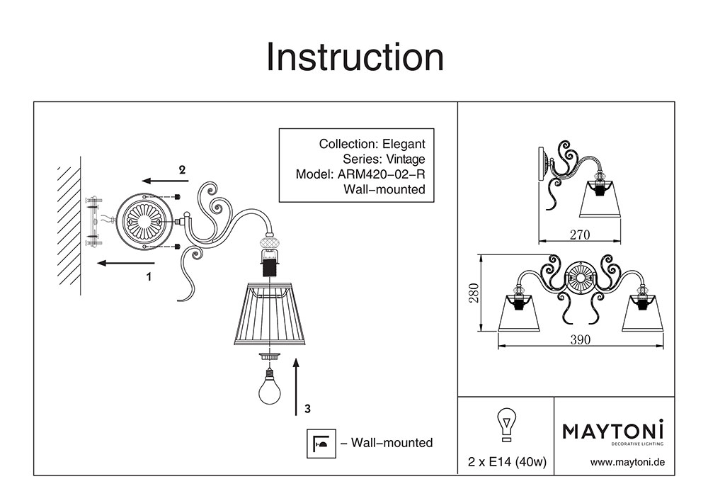 Производител на осветителни тела: Maytoni Компанията за осветителни тела Maytoni е съзададена през 2009 в Хамбург, Германия. Бързо се налага като европейски лидер и иноватор в областта на осветлението. През годините получава множество награди, които свидетелстват за високото качество и атрактивния дизайн на продуктите. Фирмата предлага както класически и модерни осветителни тела, така и специализирано техническо и архитектурно осветление.