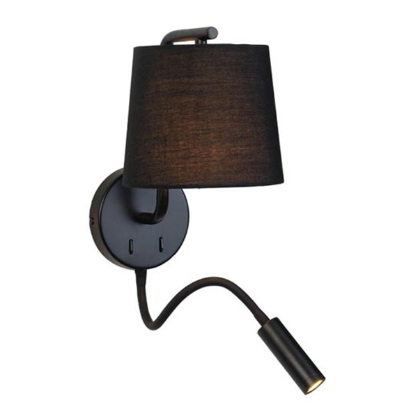 Стилен аплик с кръгла метална основа в черен мат, текстилна шапка и подвижно LED тяло за по-голямо удобство при четене Zambelis.