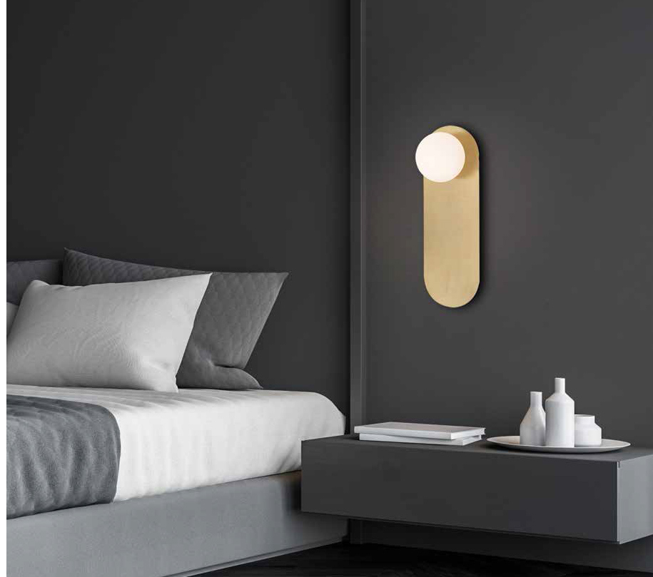 Стилен аплик със златиста матирана метална основа и стъклено осветително тяло в сферична форма Zambelis.