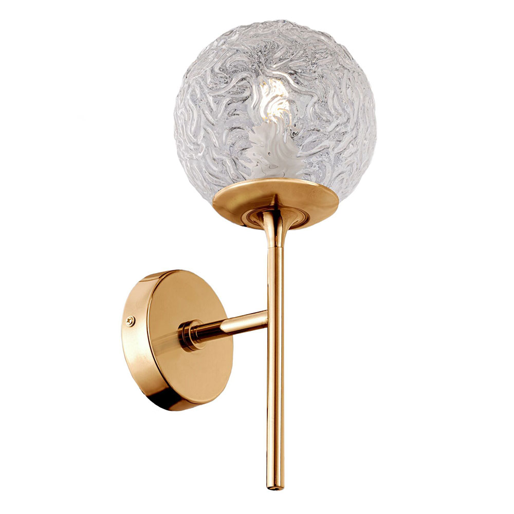 Стилен аплик с метална основа в цвят месинг и стъклена релефна сфера Maytoni, серия Ligero.