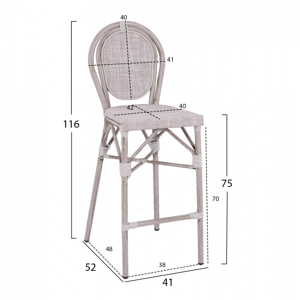 Градински бар стол от алуминий и текстил с висока облегалка, Рекси.