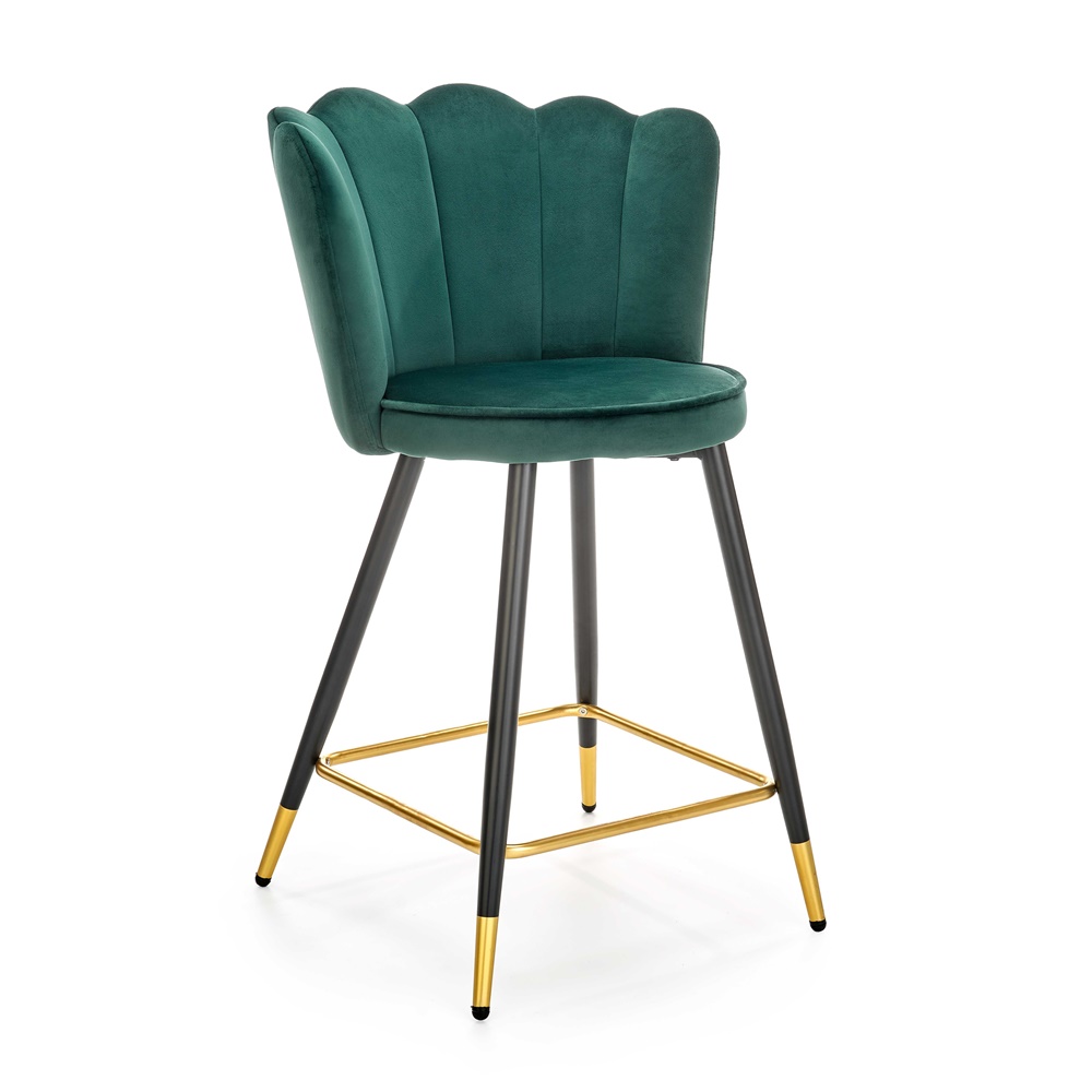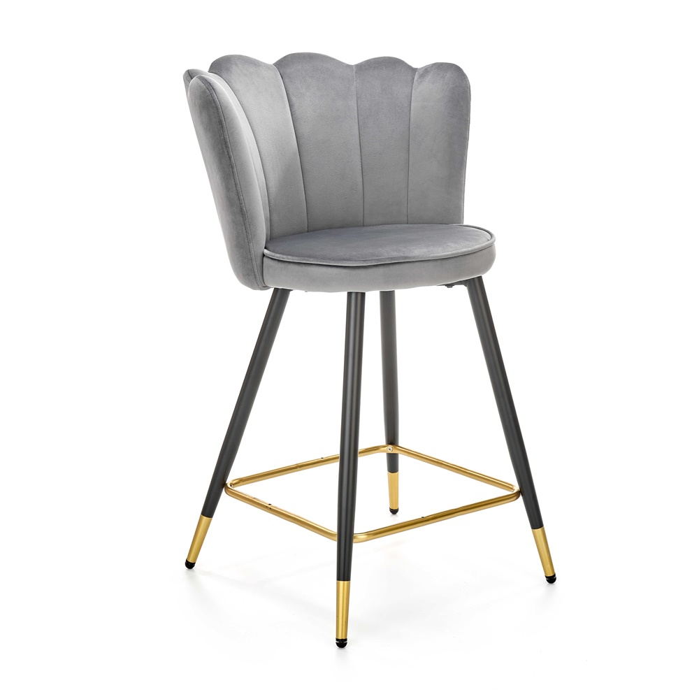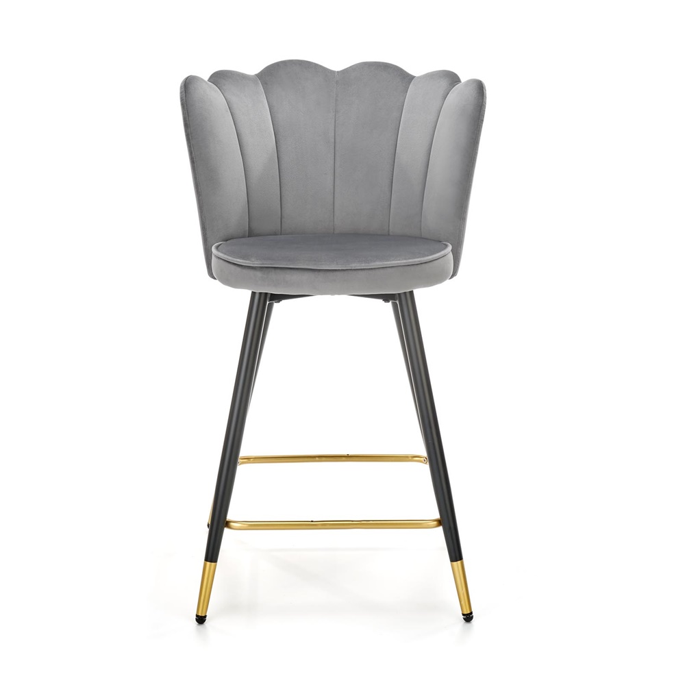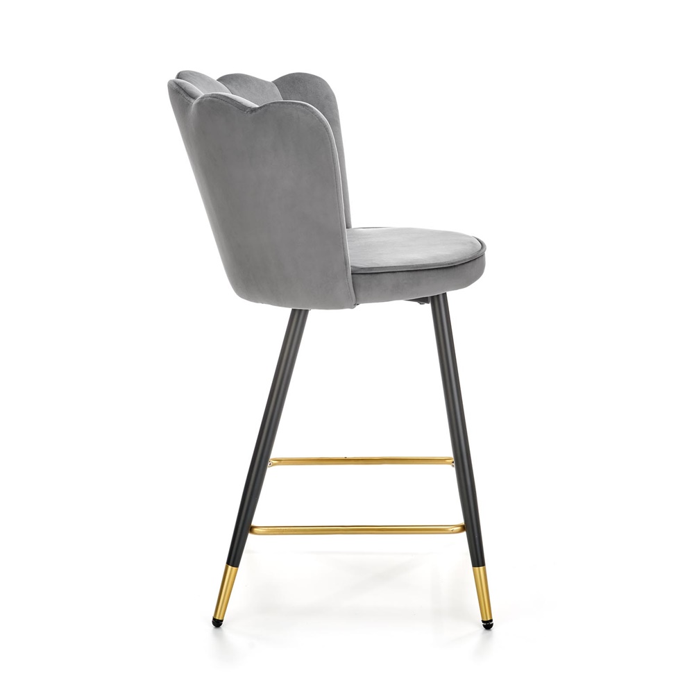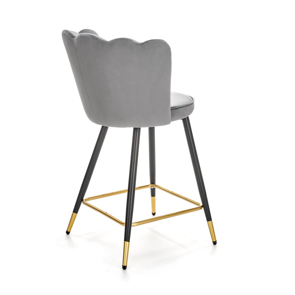 Стилен бар стол с атрактивна визия – облегалка с формата на мида и крака в черно и златисто – Бейли.