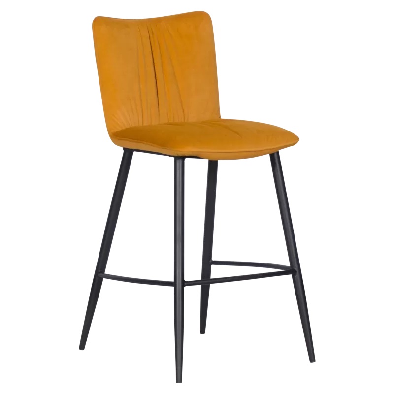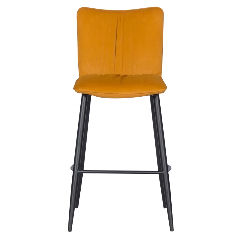 Бар стол с четири черни крака и оранжева дамаска от качествен текстил.