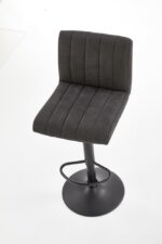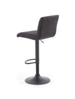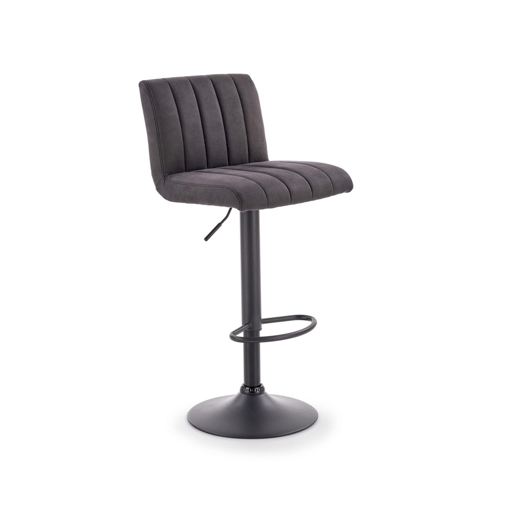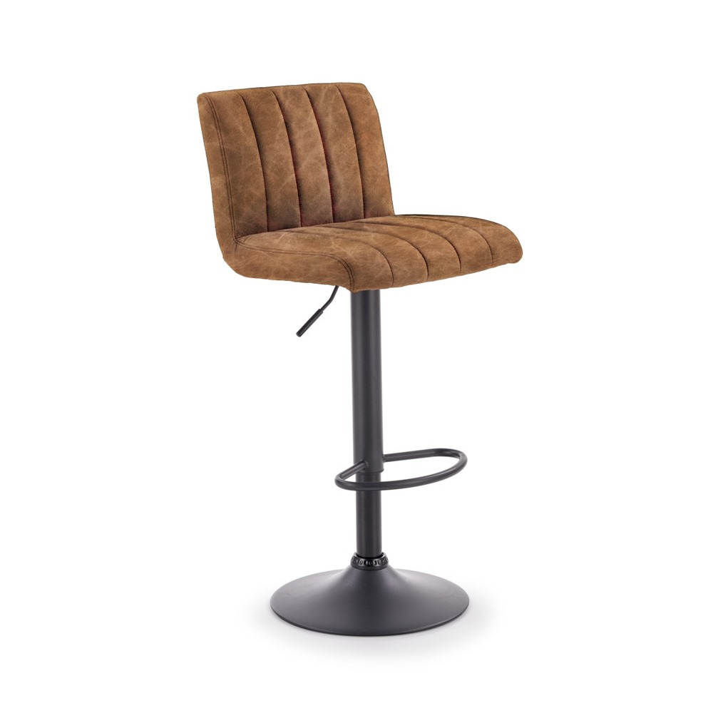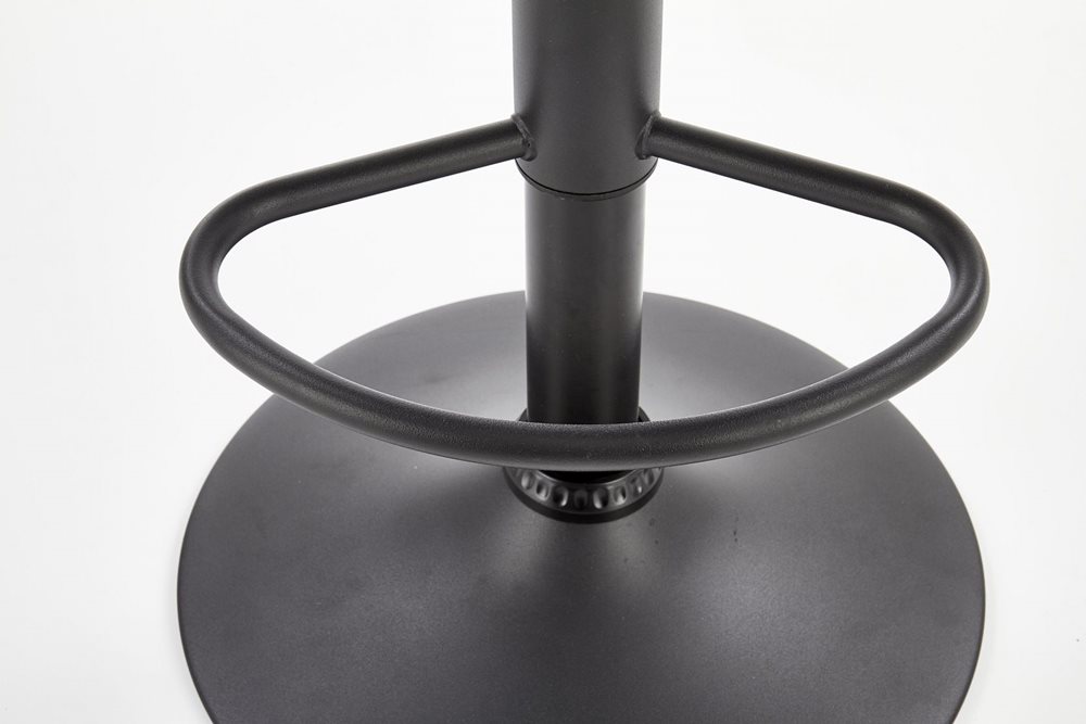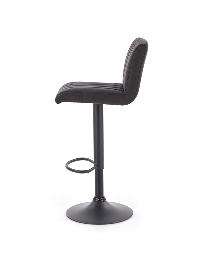 Бар стол от едноцветна еко кожа с метална основа, повдигащ механизъм и място за стъпване.