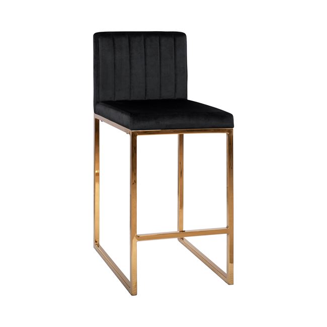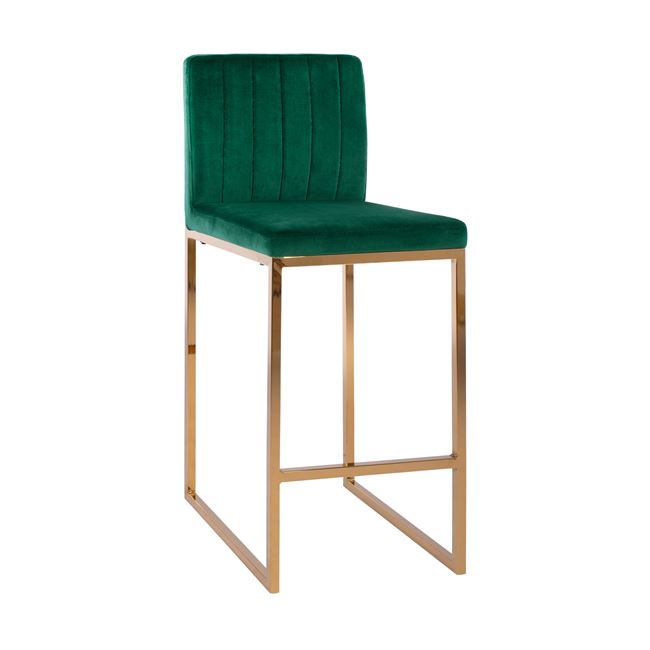 Красив бар стол, изработен с текстилна дамаска тип кадифе и метална основа в златист или тъмен нюанс.