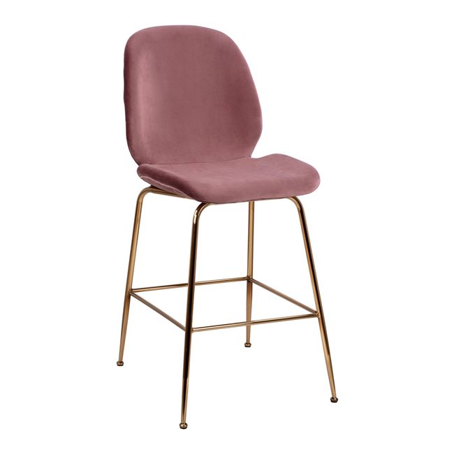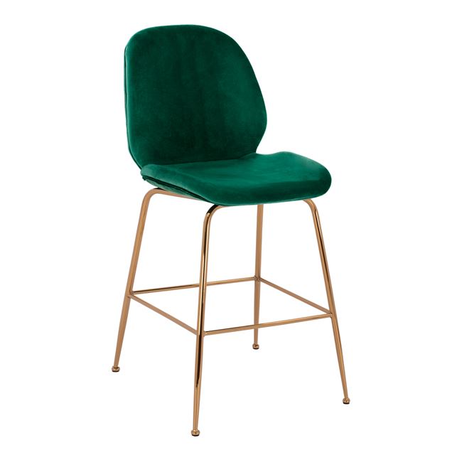 Красив бар стол със средна височина, овална облегалка и удобно място за стъпване, изработен с метална основа в черно или златисто и мека на допир текстилна дамаска тип кадифе.