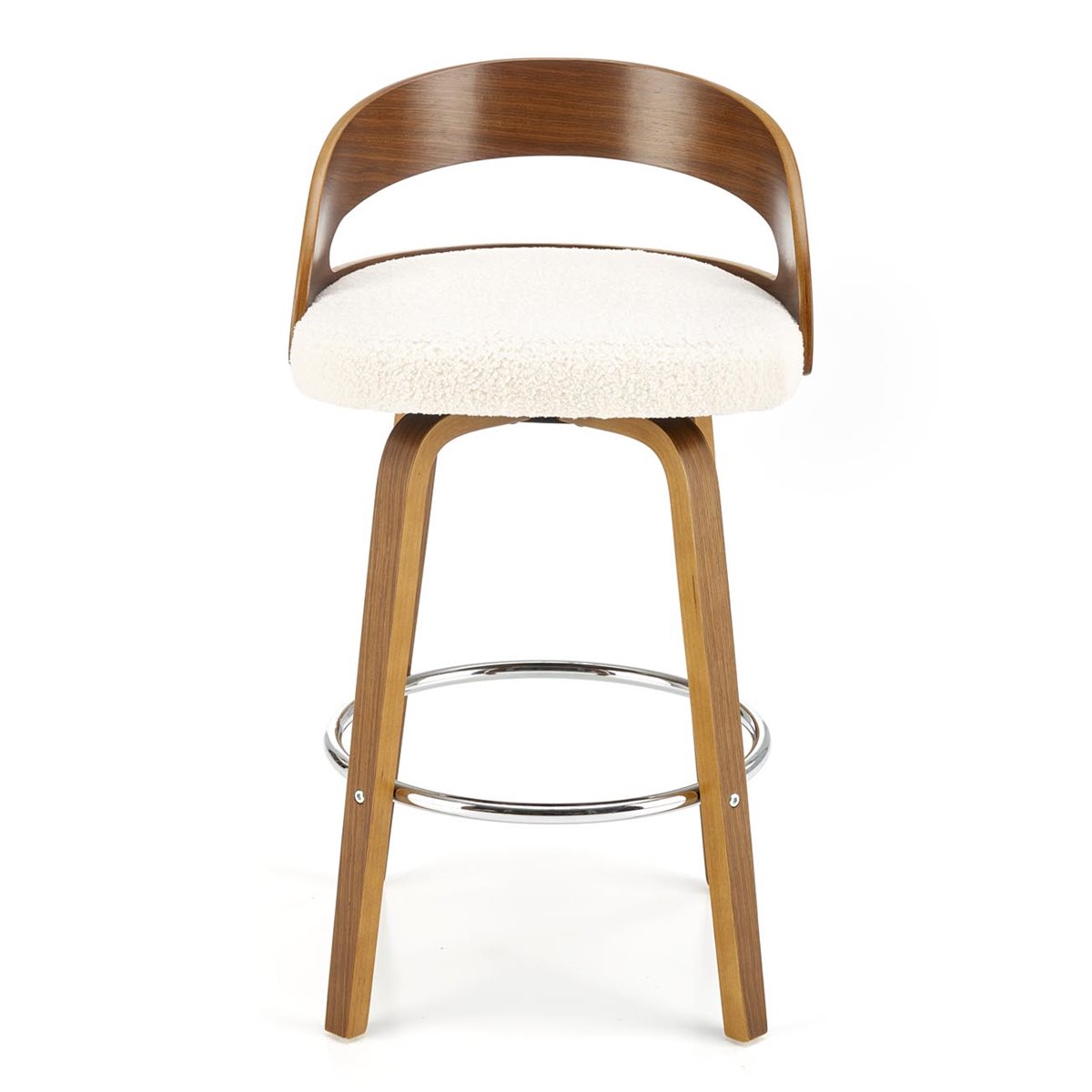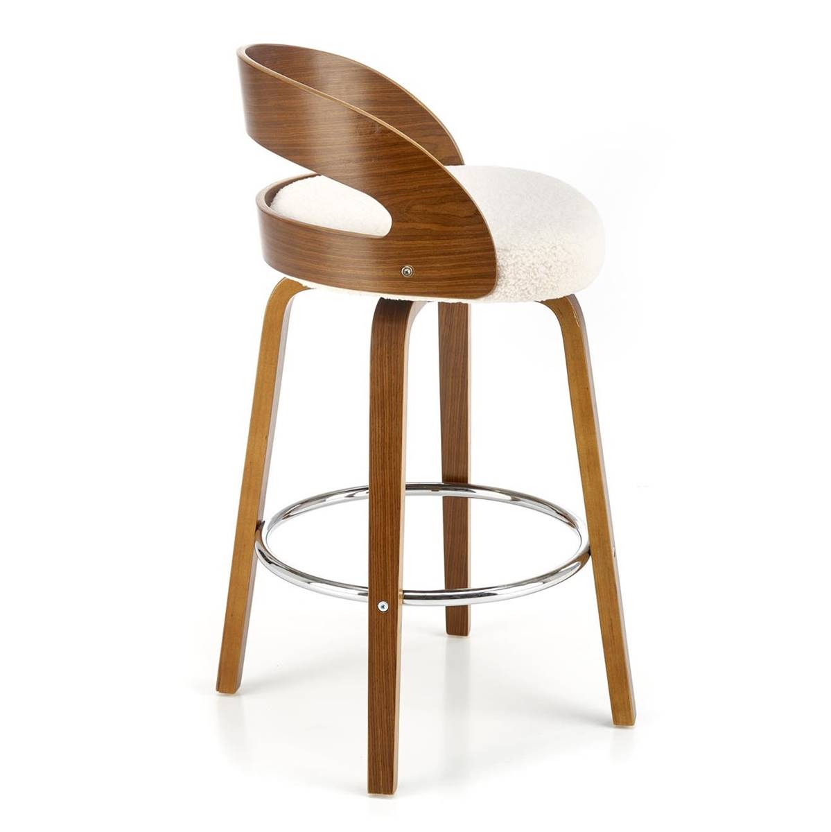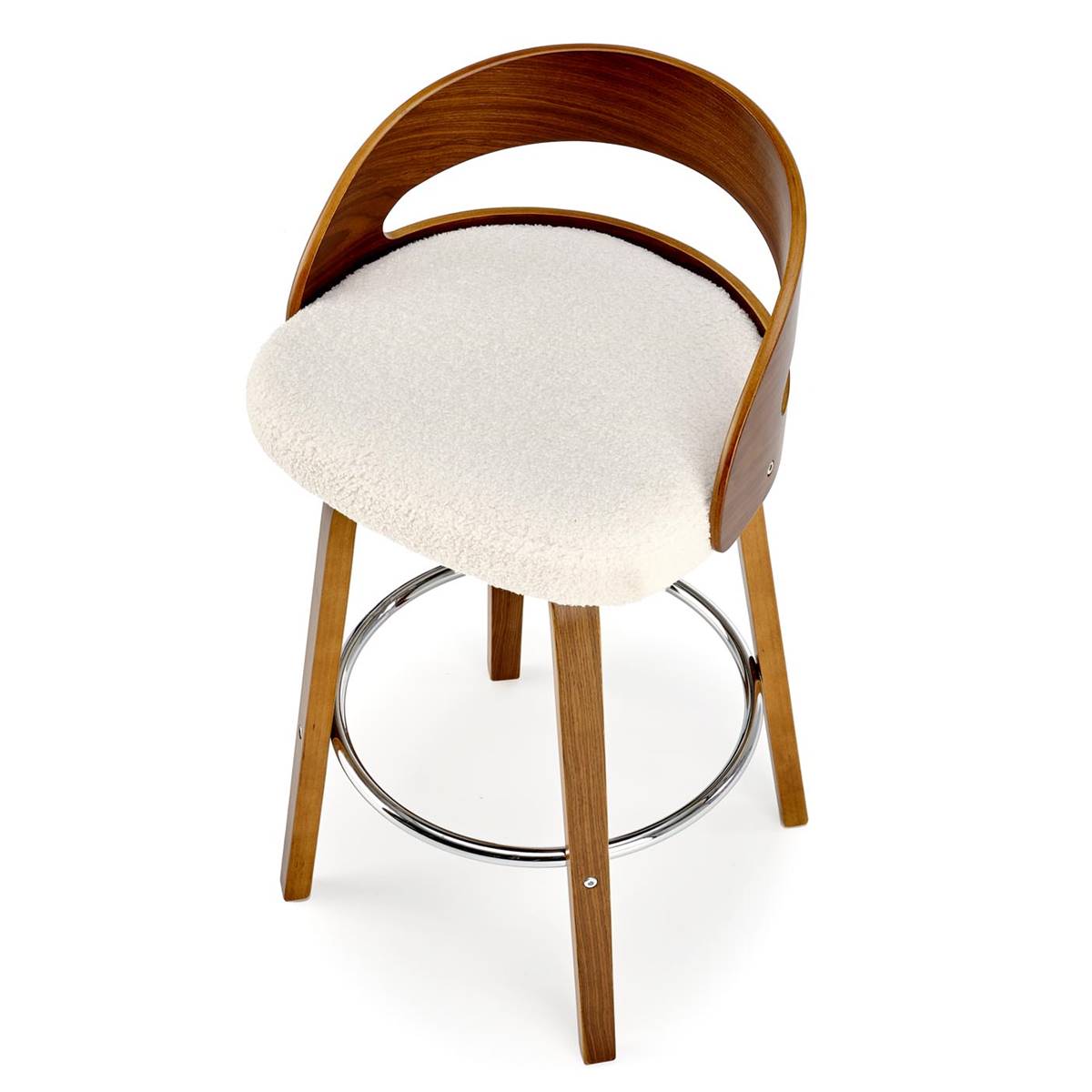 - Материал: текстил (букле), огънат шперплат, стомана (хромирана)