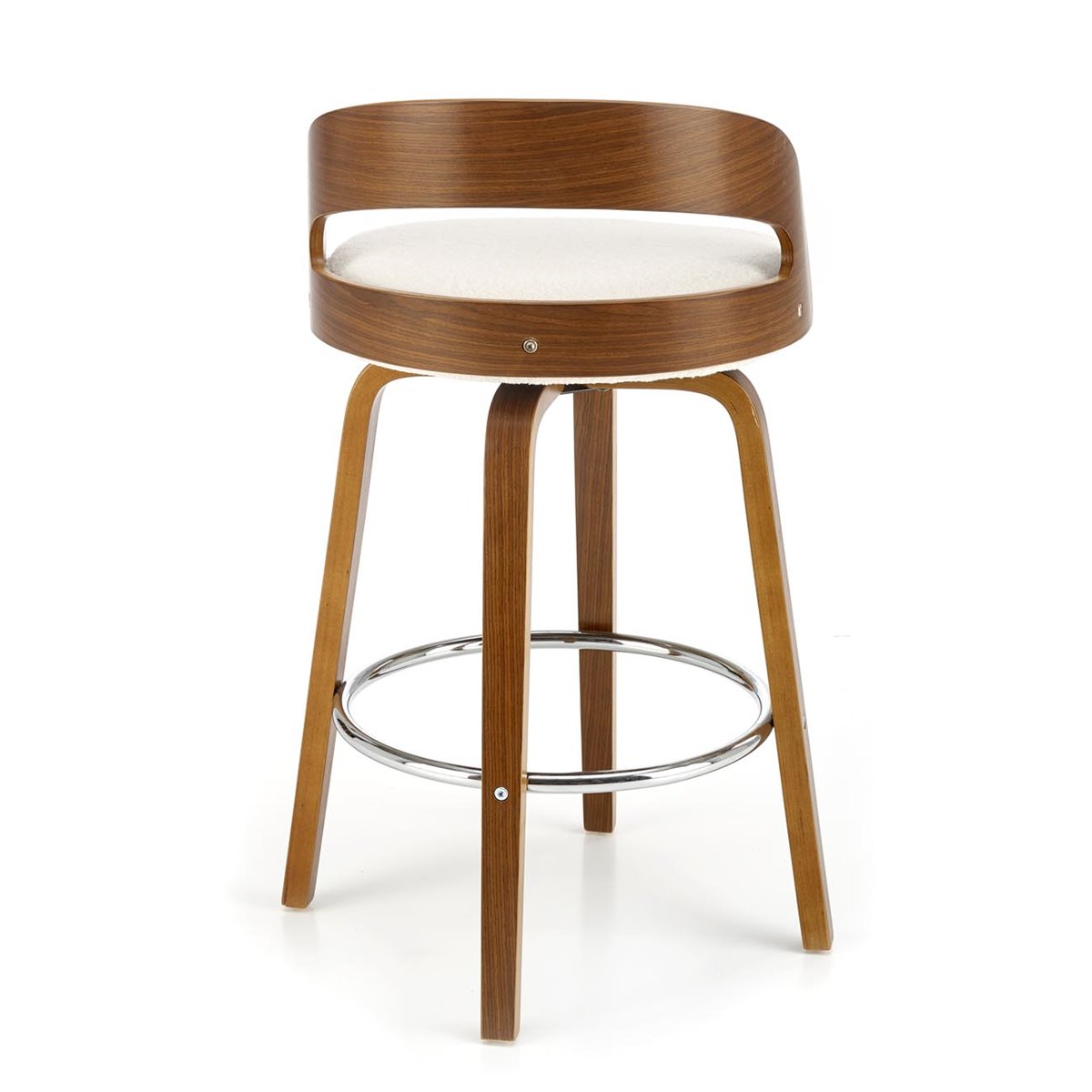 Красив бар стол с модерна визия в цветова комбинация крем и орех.