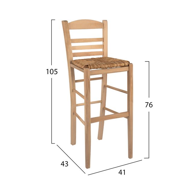 Бар стол Атина с облегалка и сламена седалка е изработен от стабилна букова конструкция в естествен цвят.