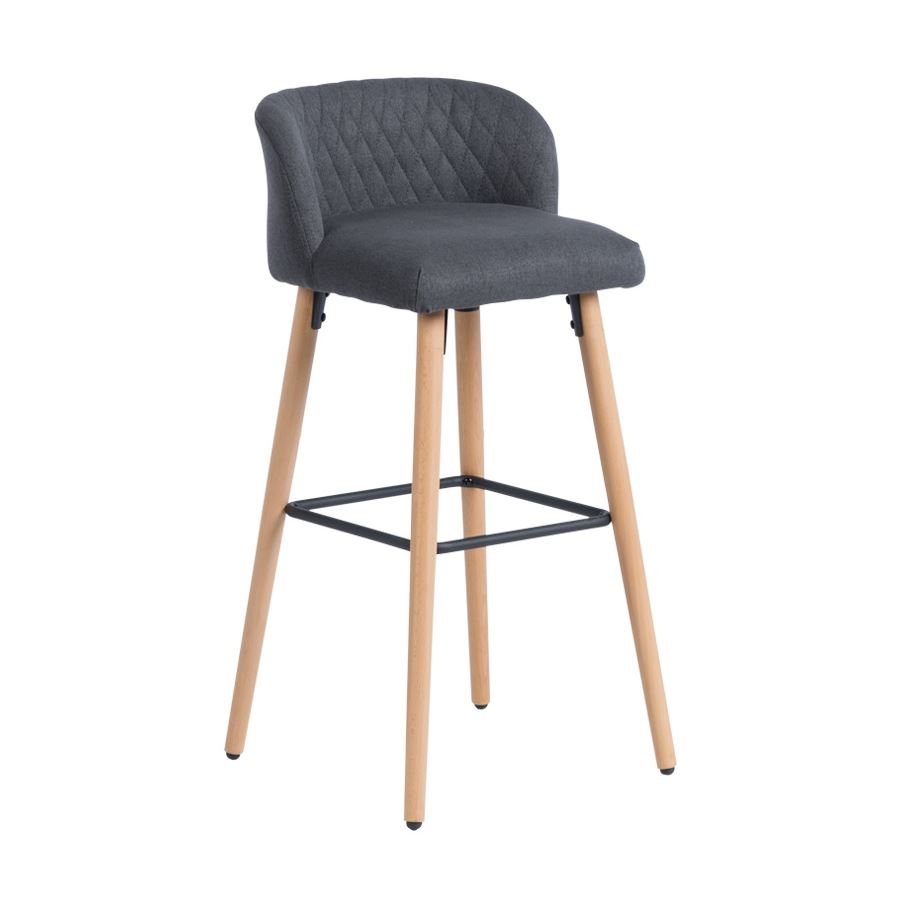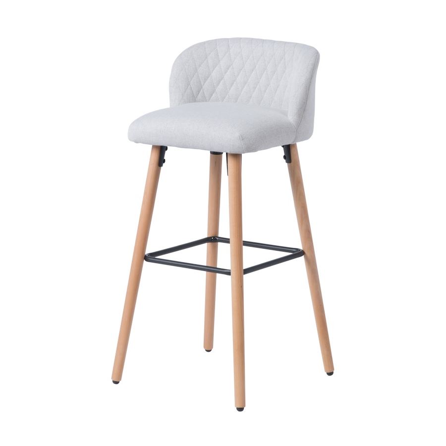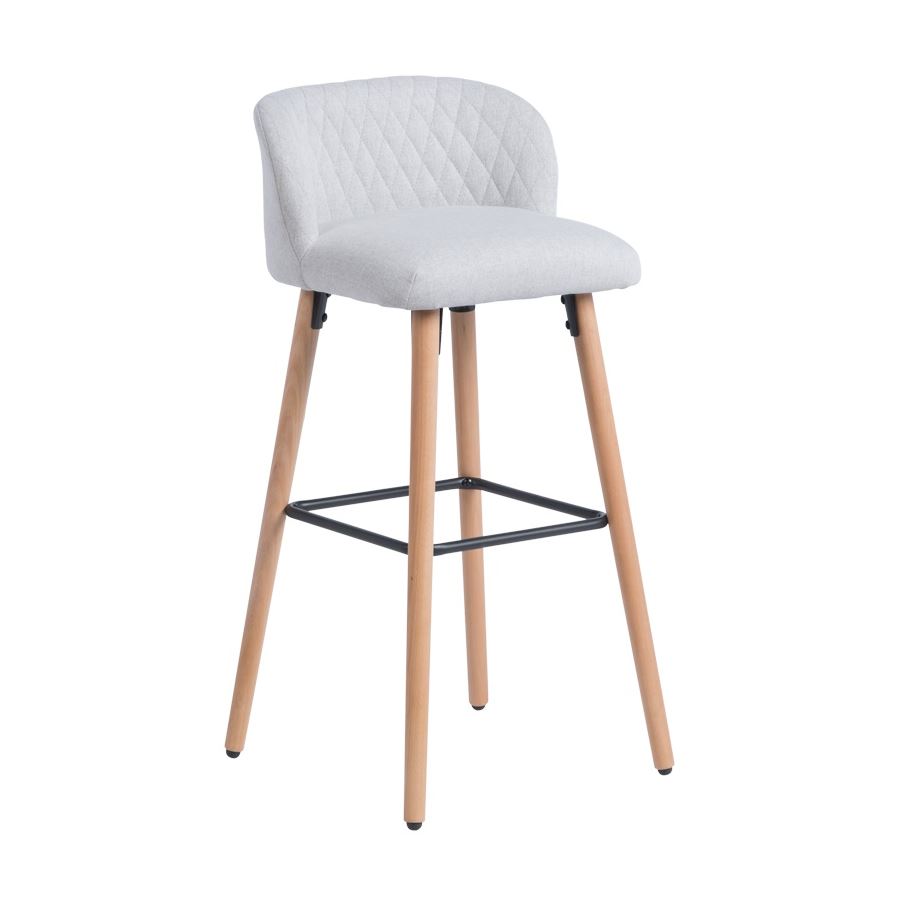 Красивият бар стол с мека седалка, извита облегалка и удобно място за стъпване е изработен от масивно буково дърво и текстилна дамаска.