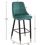 Елегантен бар стол, изработен с текстилна дамаска тип кадифе, красива облегалка с декоративни копчета и метални крака в черно със златисти детайли.