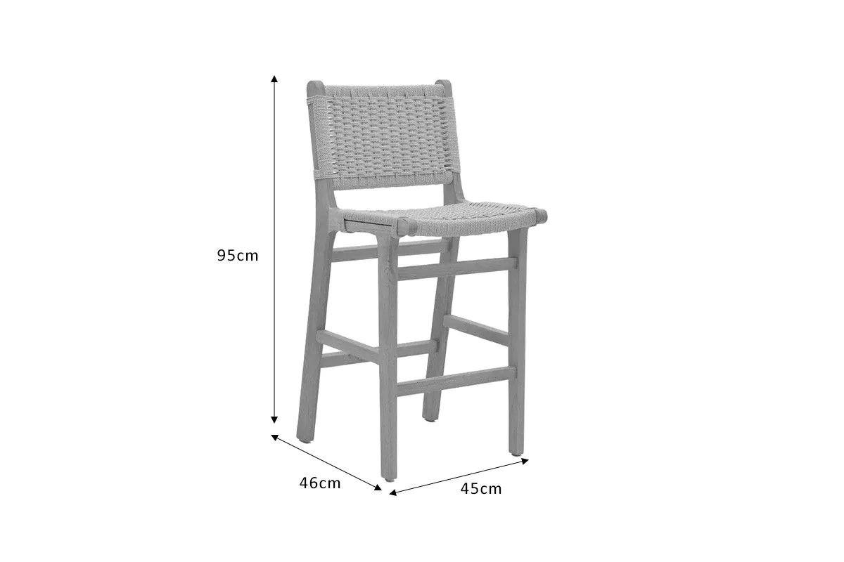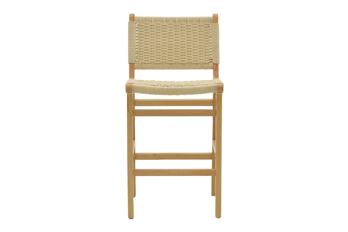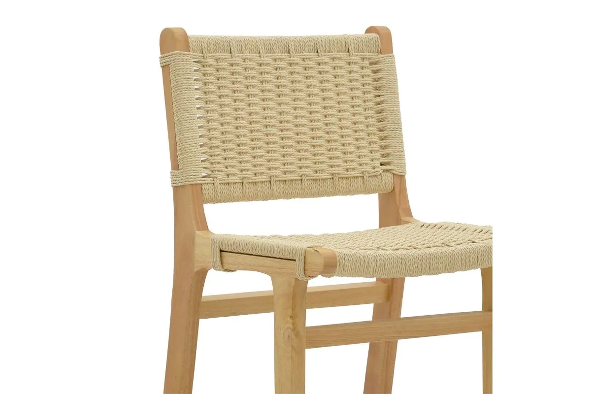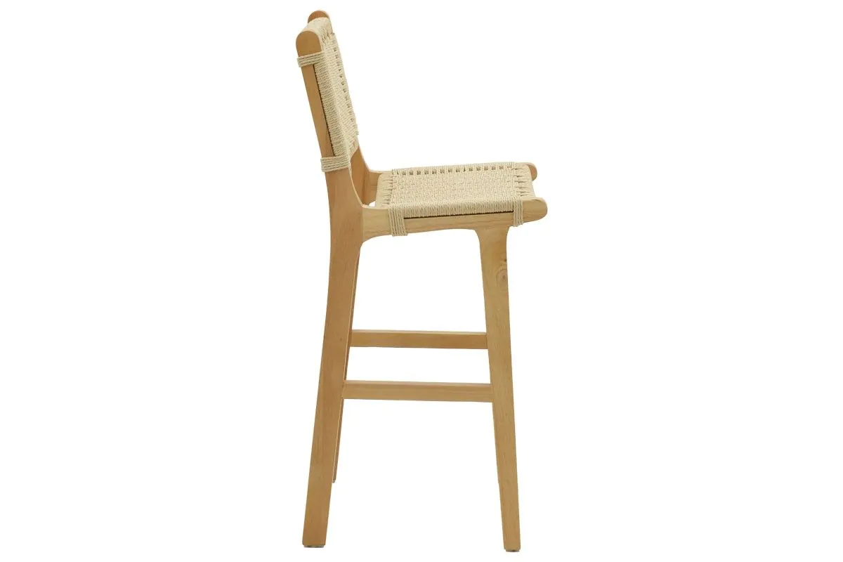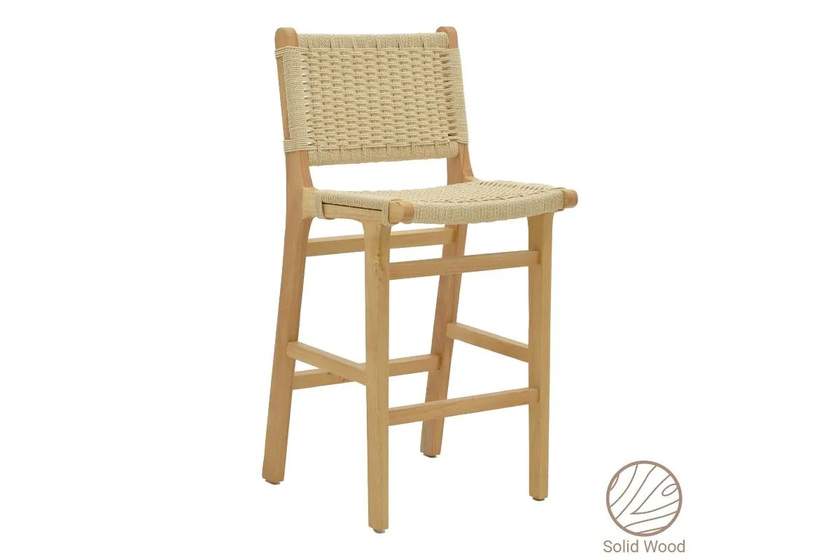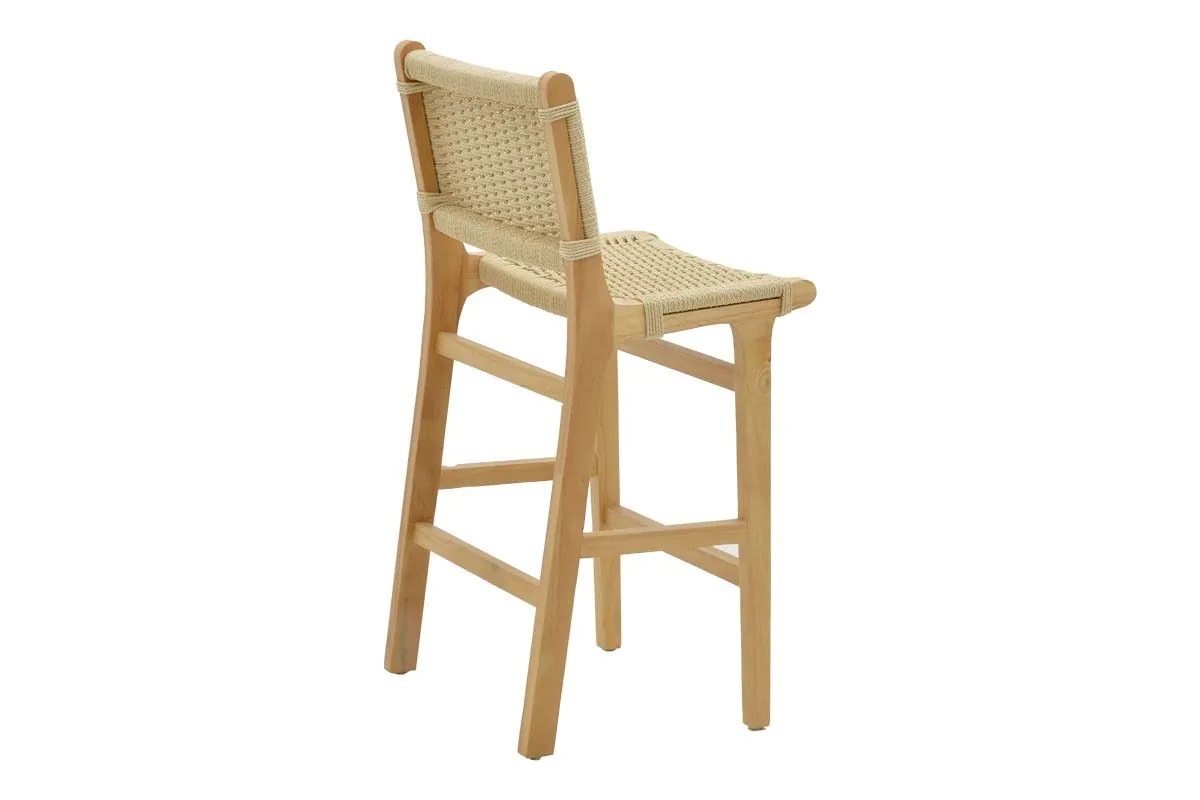 Бар стол от масив със седалка от въже Natura съчетава здравина и минималистичен дизайн с рамка от масивно каучуково дърво и натурален дървесен финиш.