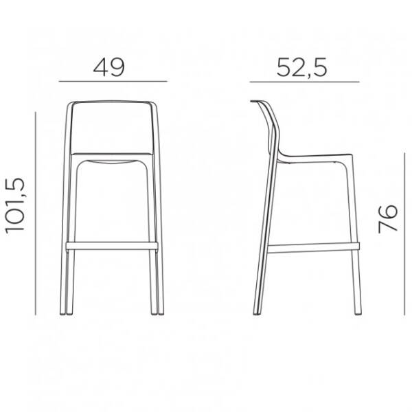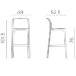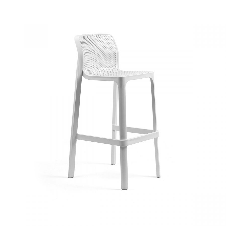 Модереният бар стол от серия Нико е изработен от полипропилен с фибростъкло и UV защита и се предлага в шест матови цвята: антрацит, бял, горчица, сив, зелен и корал.