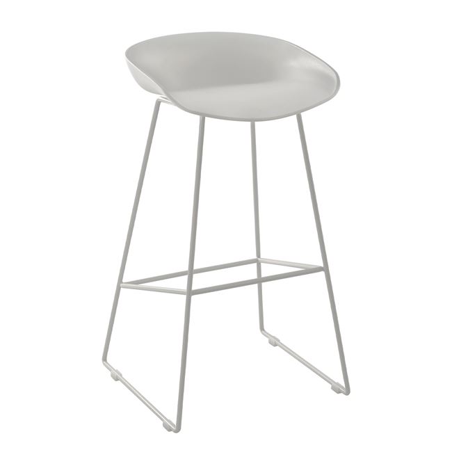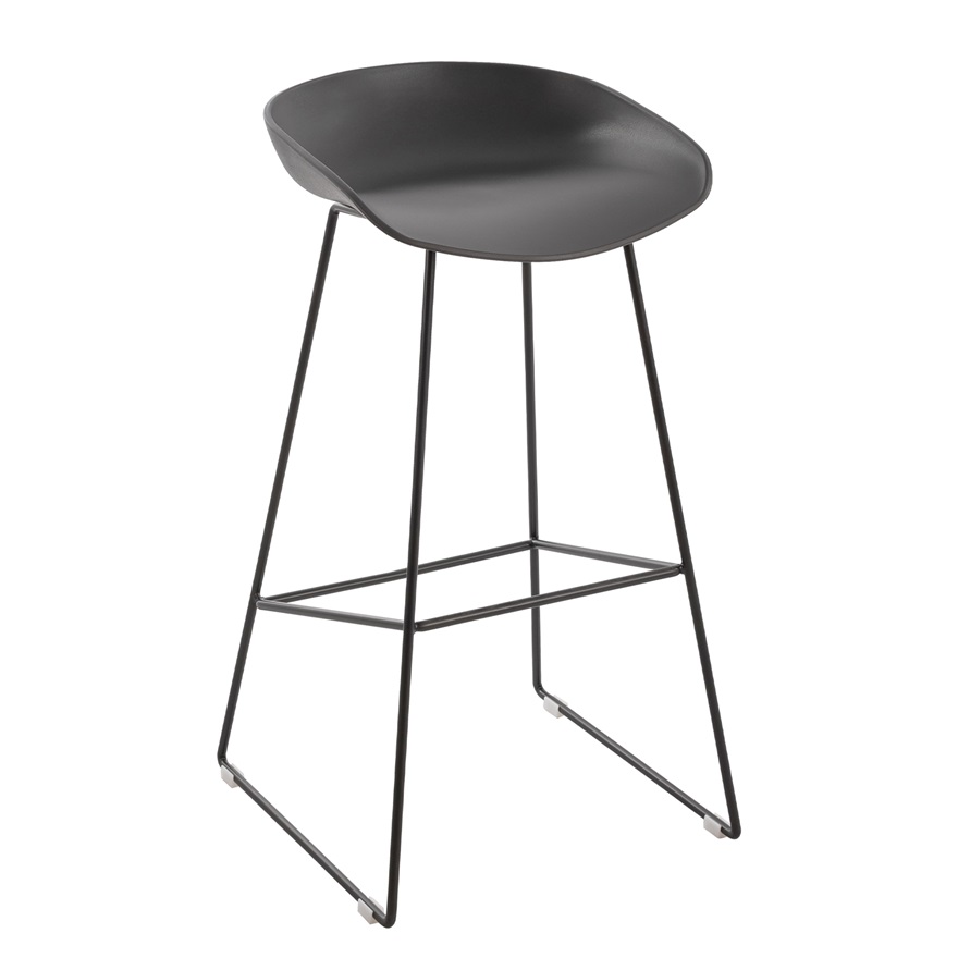 Модерен и функционален бар стол с овална седалка от полипропилен и метални крака.
